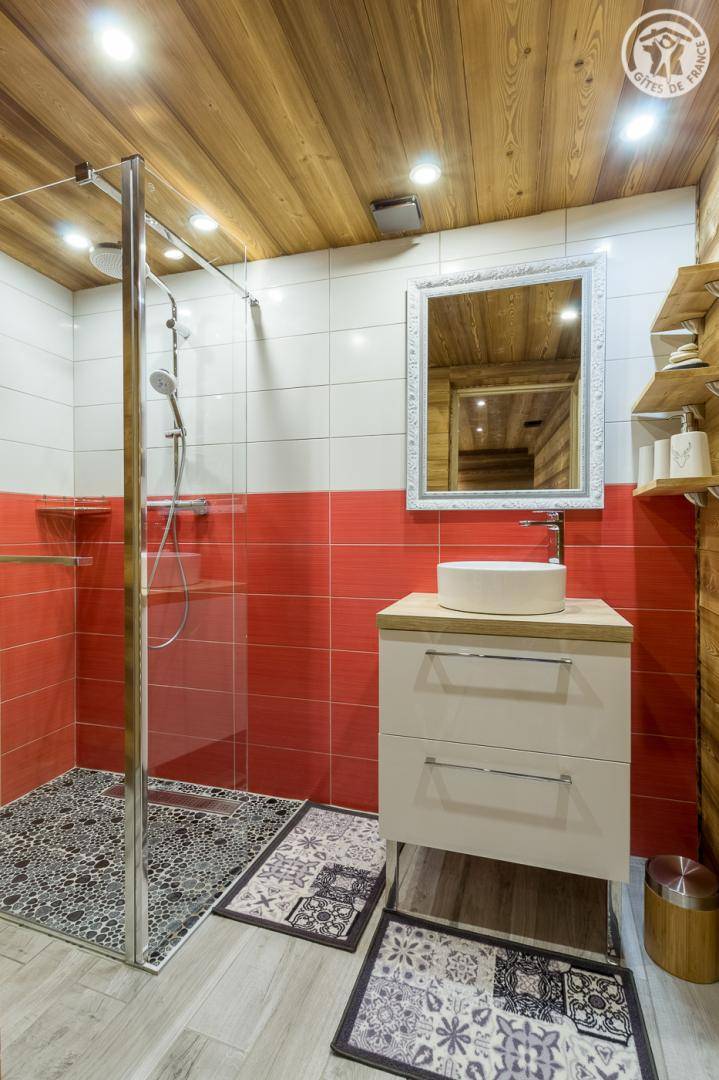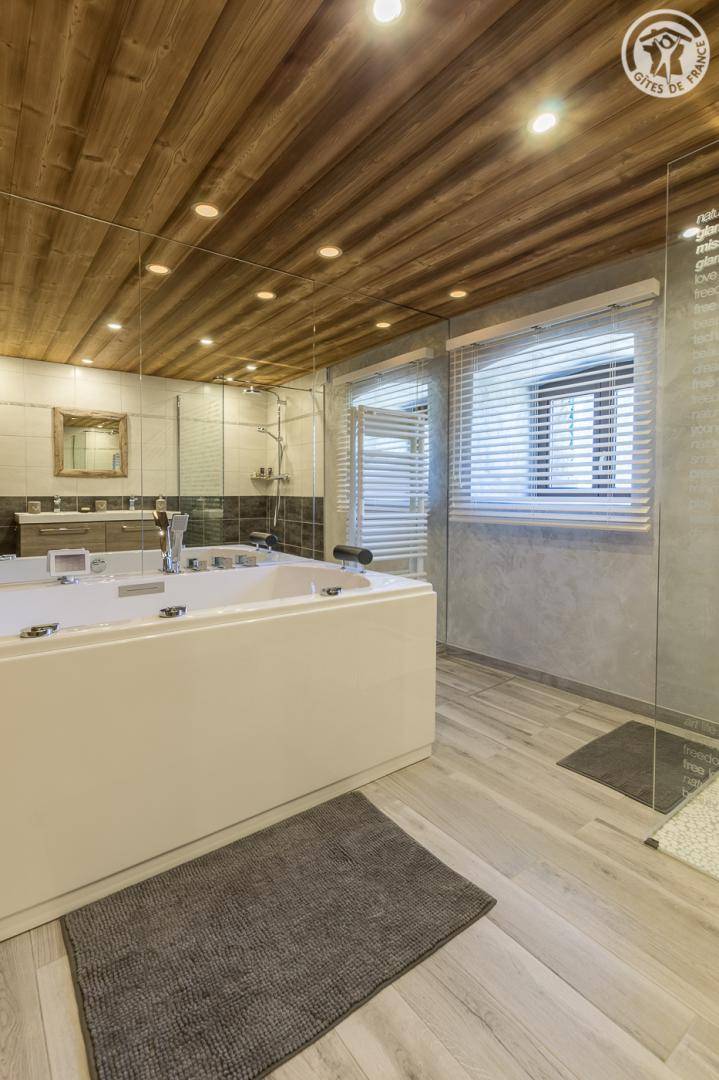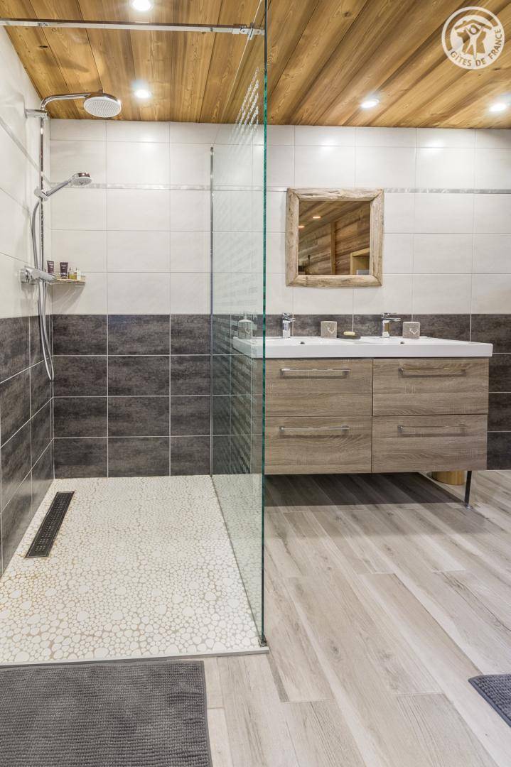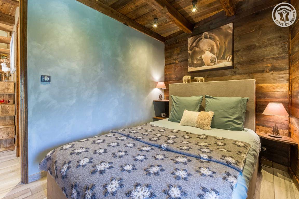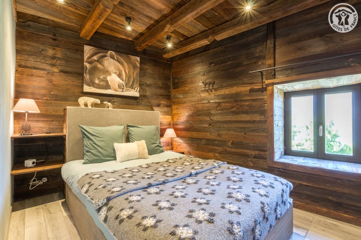 Gîte auf 3 Ebenen, im Chalet der Eigentümer (separater Eingang). Treppe zum Eingang: im 1. Stock: Wohnzimmer, Esszimmerküche (Zugang über wenige Stufen vom Wohnzimmer aus) mit direktem Zugang zur Terrasse und zum Garten, Abstellraum, 2 Schlafzimmer (1 Doppelbett 160x200 cm / 1 Doppelbett 160x200 cm), WC. Im 2. Stock vom Esszimmer, Mezzanine (Höhe weniger als 1,80m - 2 Doppelbetten 160x200cm). Im Erdgeschoss 1 Schlafzimmer (1 Doppelbett 160 x 200 cm) mit eigenem Badezimmer (Dusche und Toilette), Badezimmer (Whirlpool-Badewanne und Dusche), Toilette, Waschküche. Privatparkplatz wenige Meter vom Haus entfernt, alles inklusive, Endreinigung optional. Schuhtrockner, Fahrrad- und Skiraum.