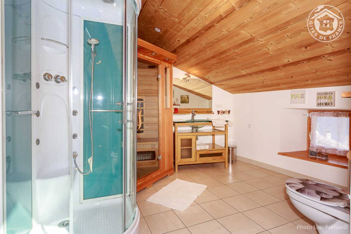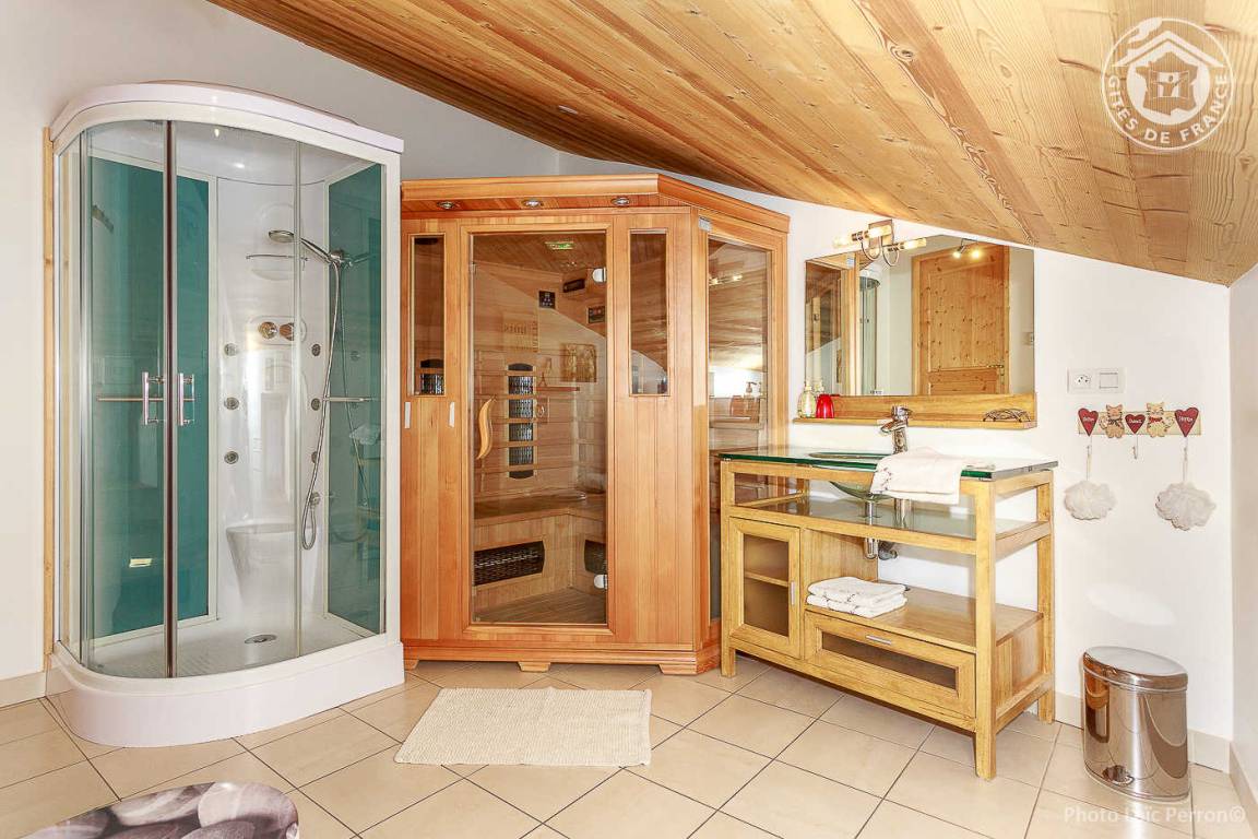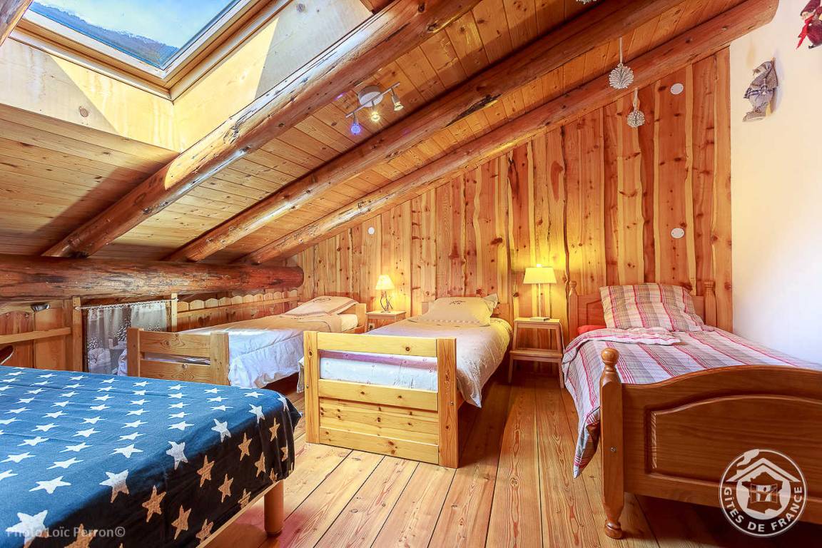 Reihenhaus. Auf 2 Ebenen. Im Hochparterre: Wohnzimmer-Küche-Lounge (Videospiele), WLAN, 2 Schlafzimmer (1 Doppelbett 140 x 190 cm / 1 Doppelbett 140 x 190 cm), Badezimmer (Dusche und Badewanne), WC. 1. Stock: 1 Schlafzimmer (1 Doppelbett 160 x 200 cm), 2 Zwischengeschosse mit Freiraum im Wohnzimmer (1 Doppelbett 160 x 200 cm / 4 Einzelbetten 90 x 190 cm), 1 Badezimmer (Multi-Jet-Dusche) . Sauna (4 Personen). Terrasse und Boden (mit Trampolin). Skifahren Orelle/Val-Thorens/3 Täler 12 km, Norma 13 km. Langlauf 20km. Schwimmbad 9km. Gewässer 13km. Viele Mountainbike-Strecken. Privatparkplatz auf 150m im Winter.