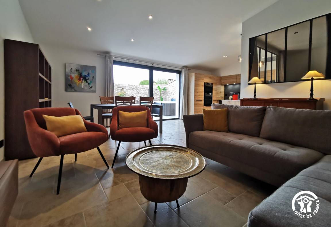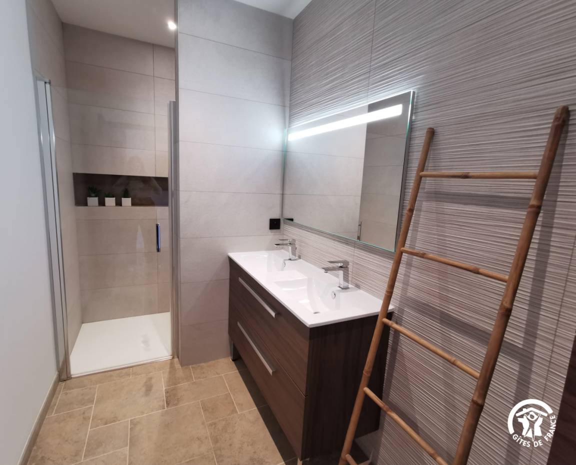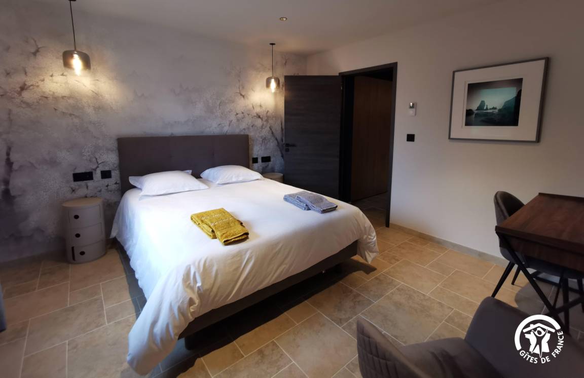 „Nous avons passé 2 semaines à la Remise ce mois d Août.La location est très très agréable, belle et le mobilier de qualité et soigné. C est neuf et fait avec soin. La literie est tres bien et le linge de maison mis à disposition, ce qui est très pratique..tout est bien pensé!. Le jacuzzi est parfait pour se délasser au calme et sans vis à vis, c est un vrai plus ce spa! La terrasse est décorée avec de beaux végétaux et agrémentée d un coin salon et plancha..c est idéal pour un farniente. Pour finir, notre hote, Mr Delieuze, est tres disponible et à l écoute, très sympathique et est de bons conseils pour les ballades, découvertes et visites. La location, au sein d un. petit village, est à 45 min des plages et sa situation permet de visiter de très beaux sites naturels et historiques. Veritablement un très bel endroit de villégiature à la Remise.“