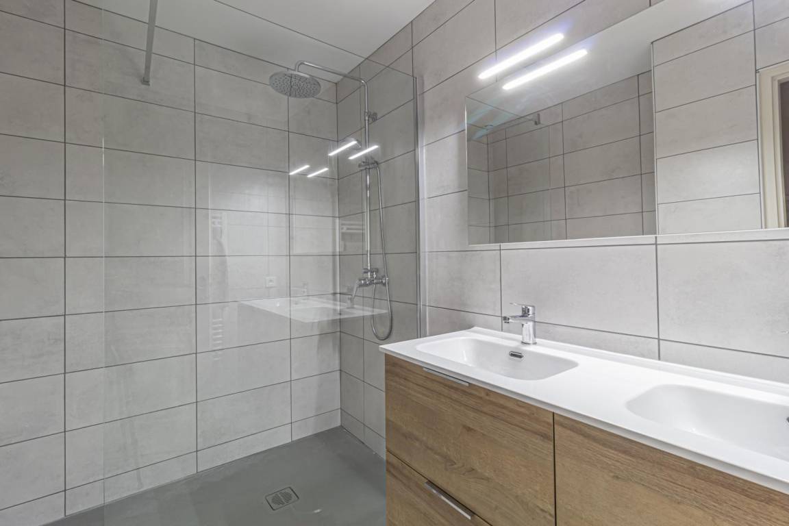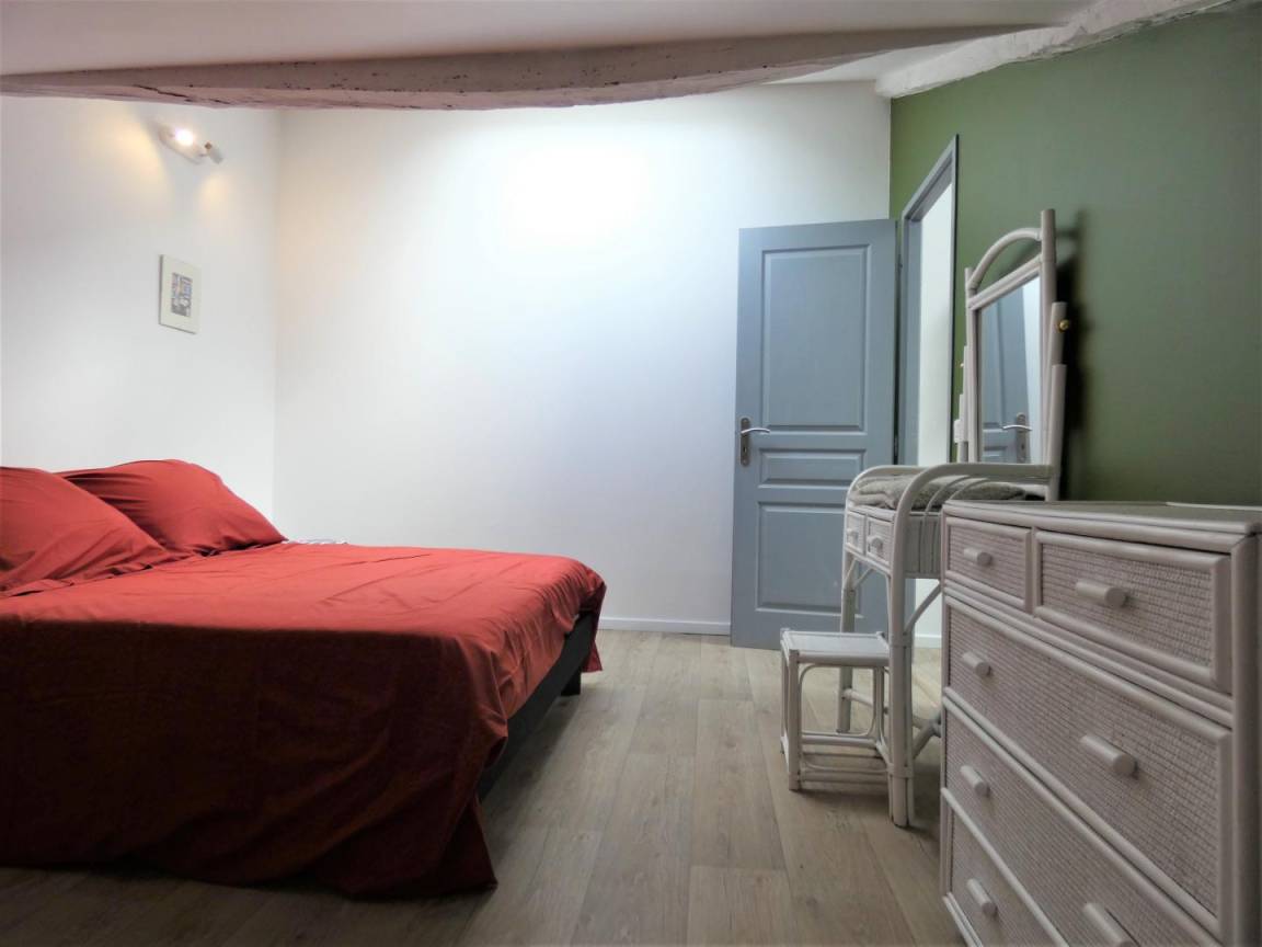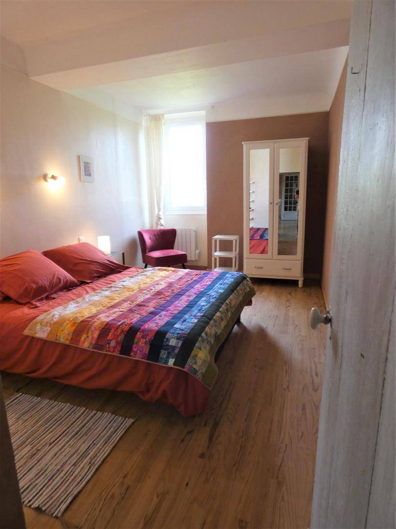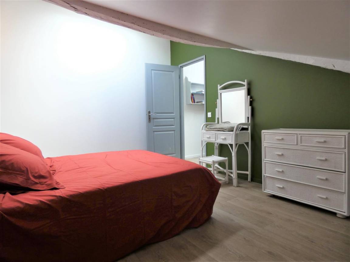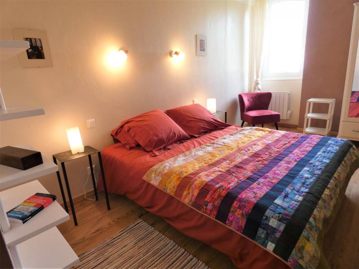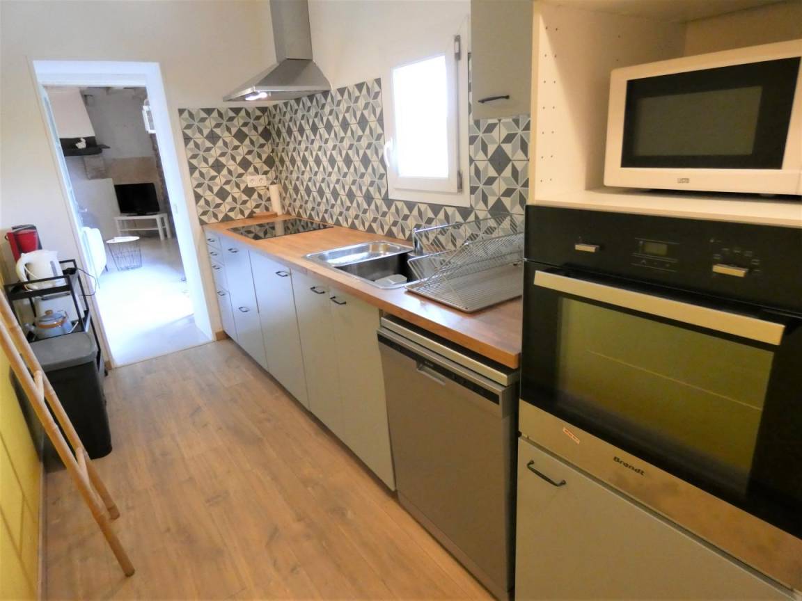 Auf zwei Ebenen verteilt, besteht es im Erdgeschoss aus einem schönen Wohnzimmer mit Ess- und Wohnbereich (TV, WLAN, Pelletofen), einer voll ausgestatteten Küche (Induktionskochfeld, Dunstabzugshaube, Geschirrspüler, Kühlschrank mit Gefrierfach). , Elektroherd, Mikrowelle), ein Schlafzimmer (1 Bett 160), ein Badezimmer (Dusche), eine Toilette, ein Waschraum mit kombinierter Waschmaschine und Trockner.