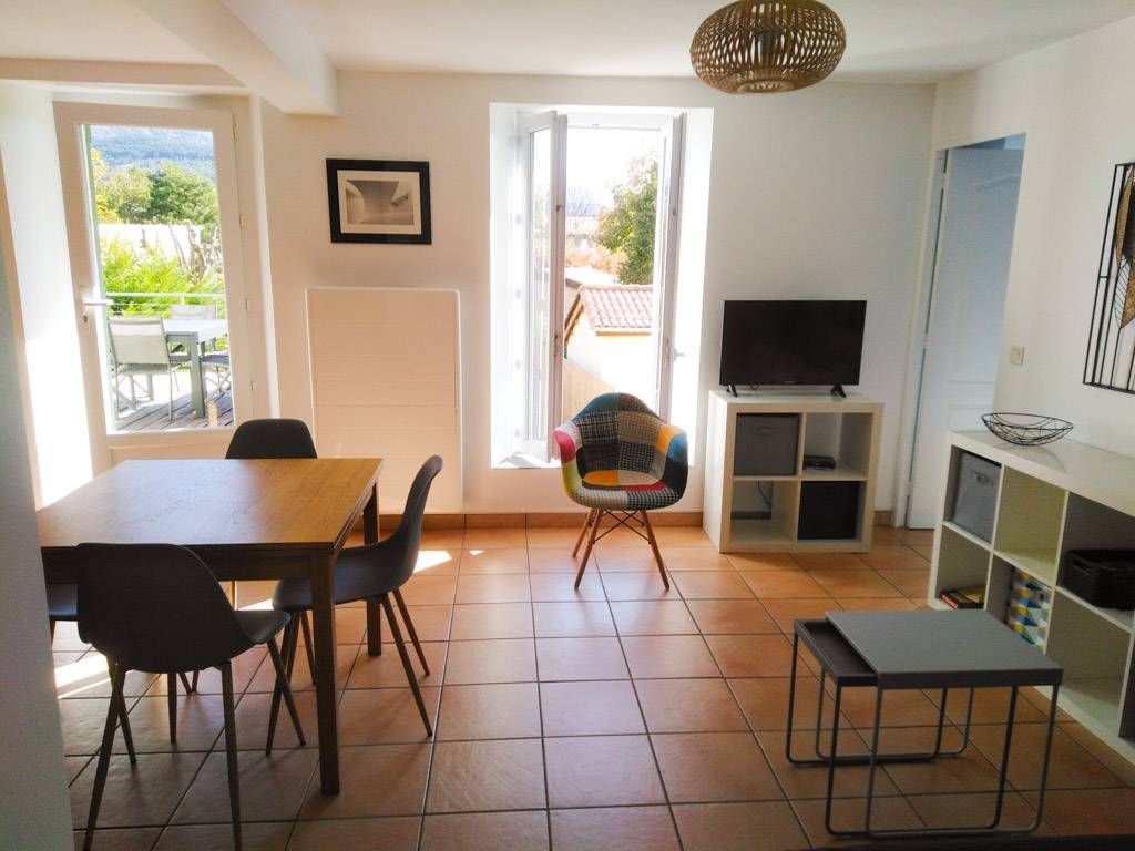 „Avons passé un excellent séjour, très bon accueil, appartement parfait bonne literie tout ce qu'il faut niveau vaisselle, bien décoré, documents à disposition pour prévoir visites et rando, très bien conseillés, terrasse agréable bien que quelques arbres ont tendance à boucher un peu la vue, petit jardinet à disposition très agréable, village assez tranquille et tout ce qu'il faut niveau commerces et le marché 2 jours par semaine c'est parfaitnous recommandons vivement“