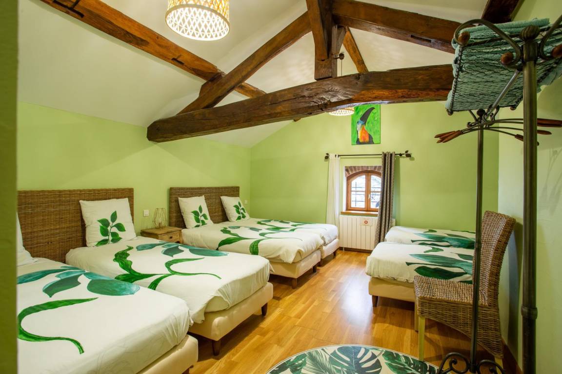 Le Domaine du Cuiset liegt auf dem Land und bietet Platz für bis zu 22 Personen. Der Zugang erfolgt über einen großen gemeinsamen Innenhof und einen Außenbereich, der die beiden Unterkünfte umfasst (Le Four à Pain mit einer Kapazität von 12 Personen und Les Attics mit einer Kapazität von 10 Personen). Die größte der Gîtes kann alle Gäste zum Essen empfangen. Sie haben die Möglichkeit, aus 8 Schlafzimmern mit jeweils einem Badezimmer und einer separaten Toilette zu wählen; 7 davon befinden sich im Obergeschoss, darunter 3 Schlafzimmer mit jeweils einem Doppelbett, 1 Schlafzimmer mit 2 Doppelbetten, 2 Schlafzimmer mit 2 Einzelbetten und ein Schlafzimmer mit 6 Einzelbetten. Das achte Schlafzimmer mit einem Doppelbett in der Brotbackofen-Ferienwohnung ist vom Erdgeschoss aus zugänglich.