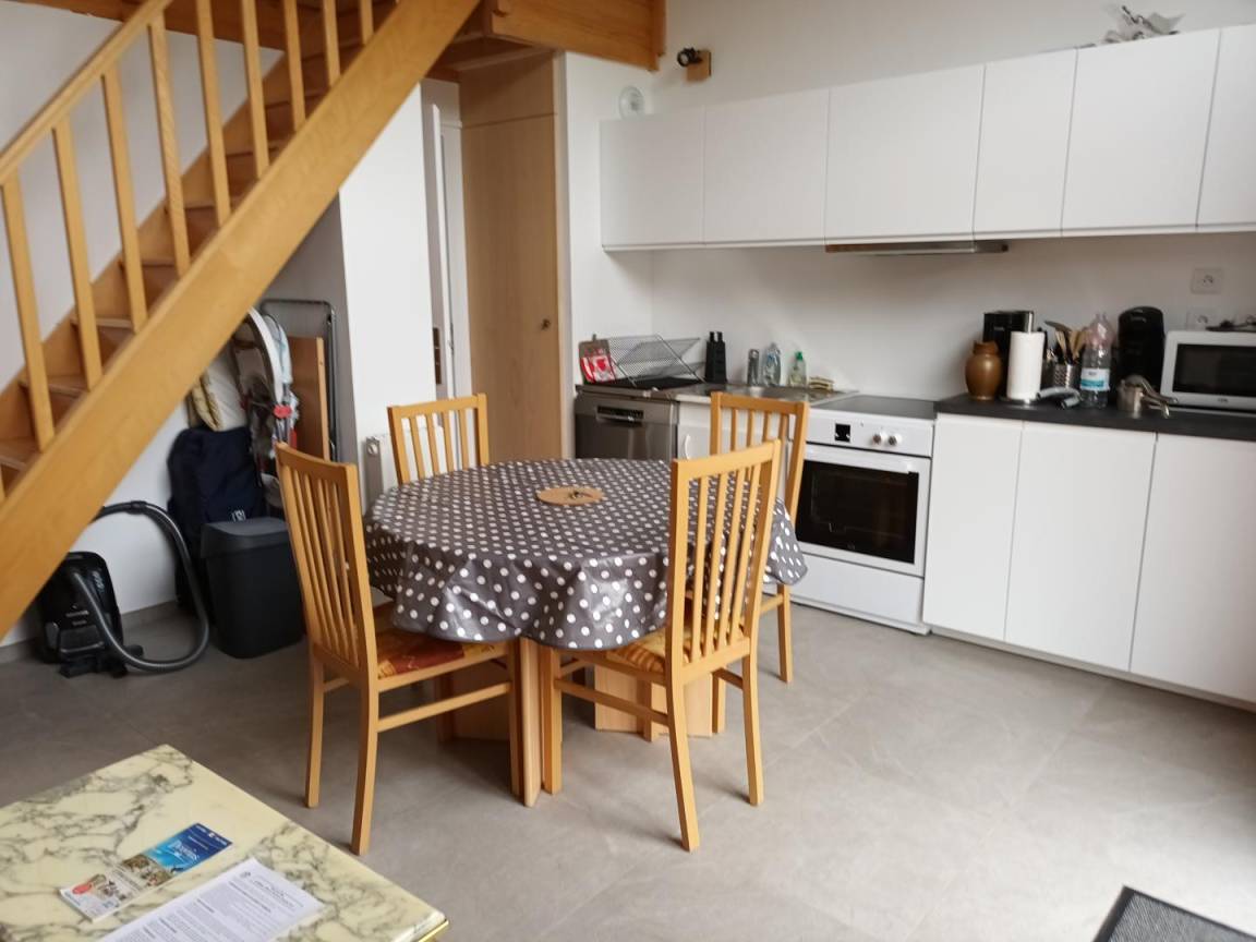 Erdgeschoss: Esszimmer mit Schlafcouch und voll ausgestatteter Küchenzeile. Ein Schlafzimmer mit Doppelbett (160 x 200 cm). Ein Badezimmer mit Dusche, WC und Waschmaschine.
