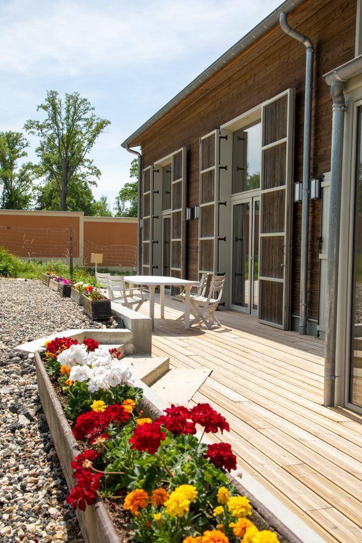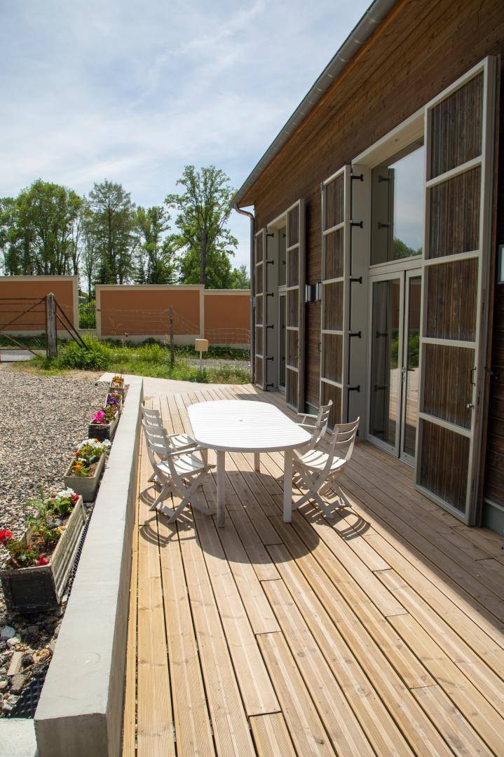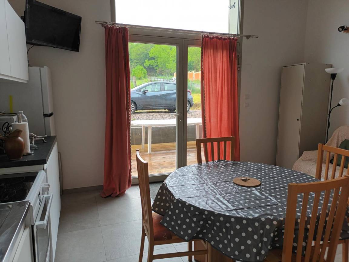 Das Ferienhaus TISANE befindet sich in einem Fachwerkhaus, direkt neben einem weiteren Ferienhaus und dem Haus der Eigentümer. Es verfügt über eine Terrasse mit Gartenmöbeln, Grill und Liegestühlen.