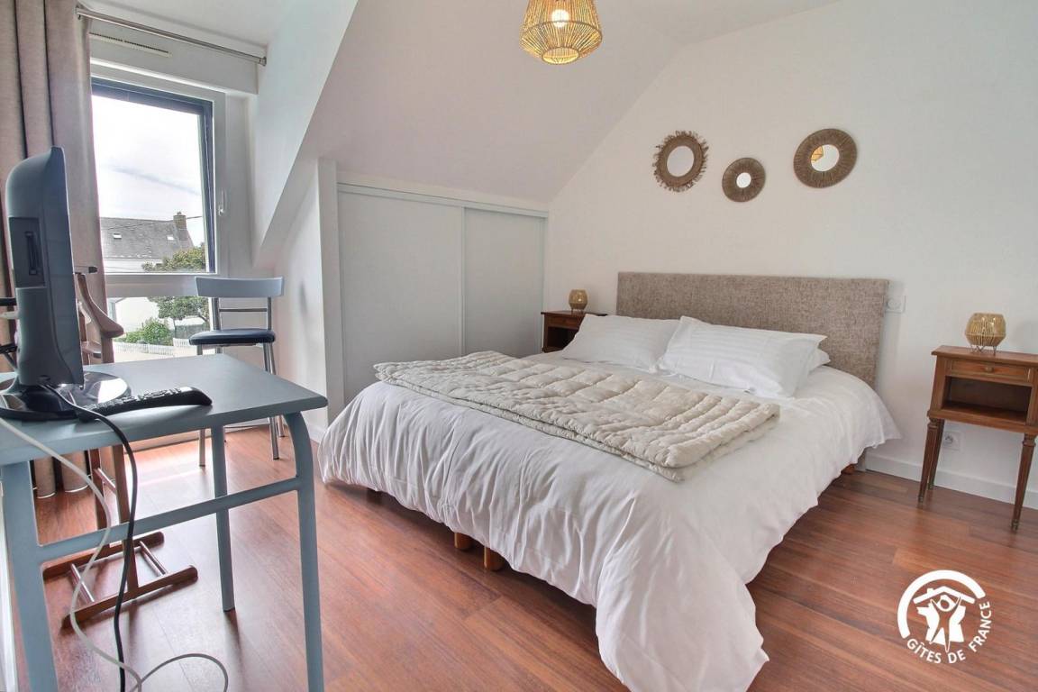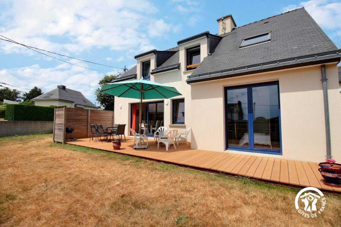 Das Haus verfügt über fünf Schlafzimmer, sodass jeder seinen eigenen Raum findet. Die Küche ist komplett ausgestattet und die möblierte Terrasse lädt dazu ein, das schöne Wetter in gemütlicher Atmosphäre zu genießen. Der umzäunte Garten ist ein echter Gewinn für Kinder.