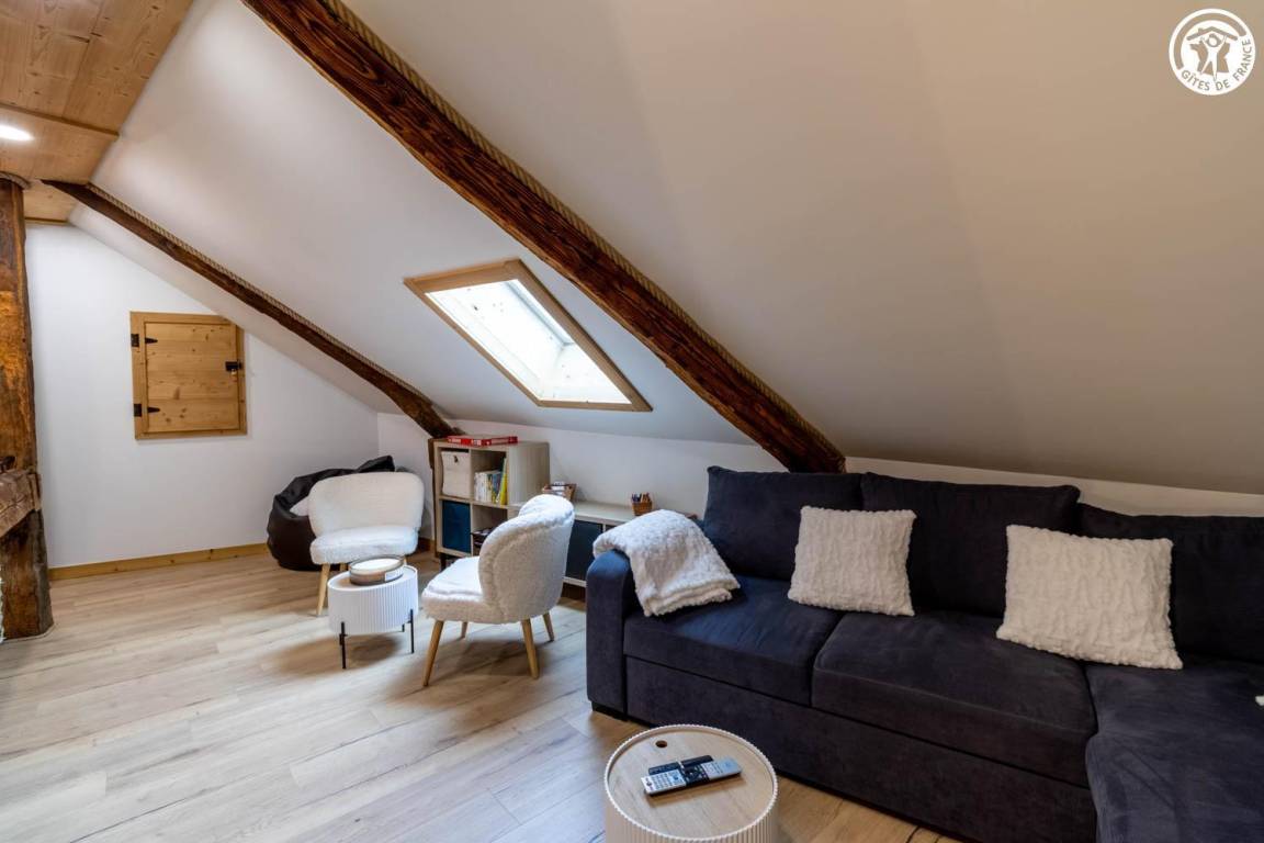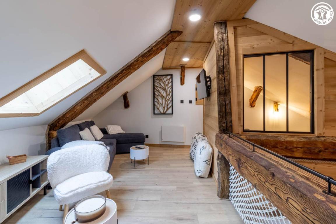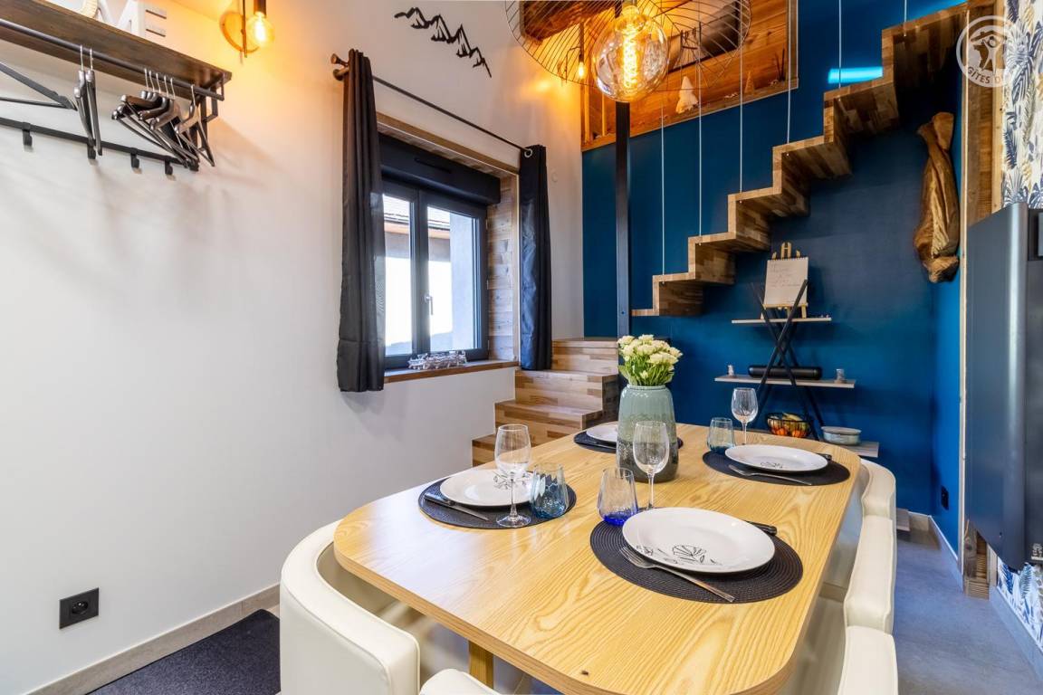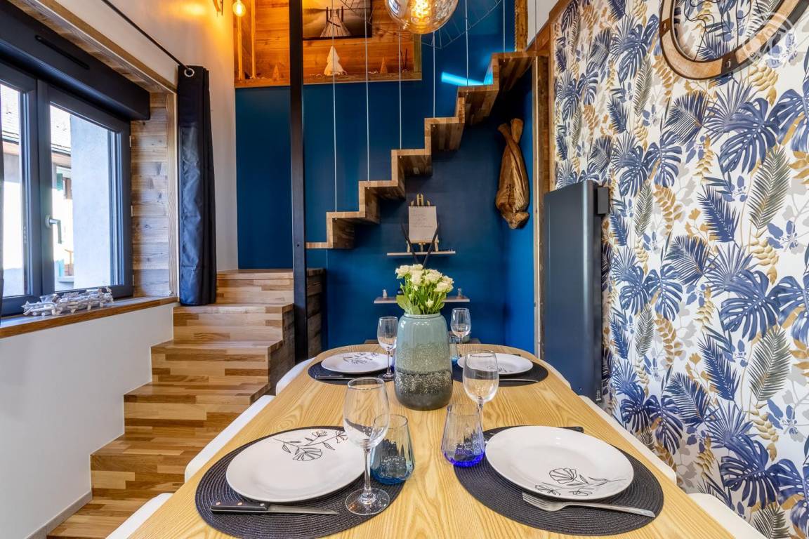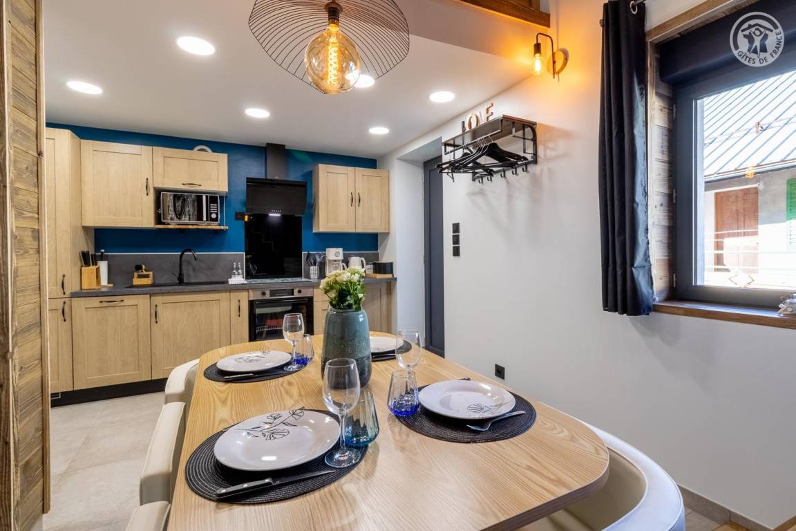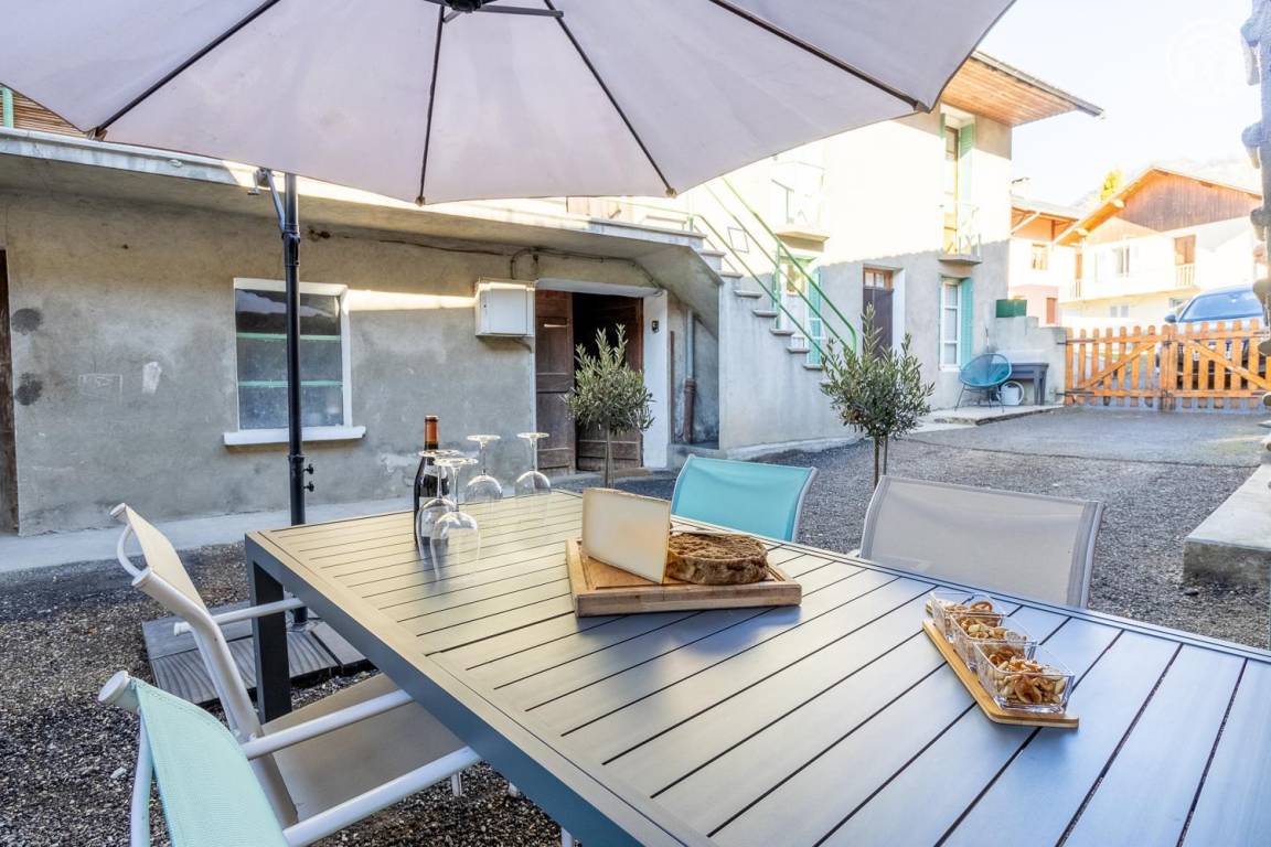 Sorgfältig renovierte Unterkunft, die modernes Design mit Bergtönen verbindet. Im Herzen des Dorfes gelegen, nur wenige Schritte von der Kirche und dem Cartier-Hof entfernt, wo Führungen und Verkostungen lokaler Produkte möglich sind. Eine private Terrasse und umfassende Ausstattung bieten diesem Ferienhaus allen nötigen Komfort in einer warmen Atmosphäre. Bei Miete von Bettwäsche sind die Betten bezogen.