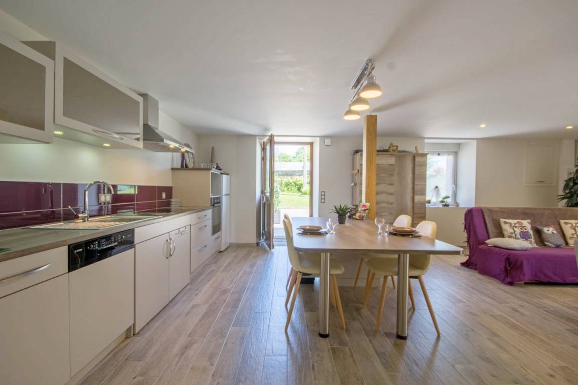 Lernen Sie die echte Bretagne kennen im Blavet-Tal im Hinterland des Morbihans, eine natürlich gebliebene Gegend auf dem Land mitten im Grünen. Wer die Natur liebt und gern angelt, ist hier zu jeder Jahreszeit richtig. Ein angenehmer Weg führt am Fluss entlang, er eignet sich auch wunderbar für Radtouren: Ruhe, unberührte Natur, und nicht nur an den Schleusen gibt es etwas zu beobachten.Ebenerdiges Ferienhaus in dem ruhigen Weiler im Grünen St-Barthelemy. Erdgeschoss: wunderschöner und großer Wohnbereich mit voll ausgestatteter Küche, Esszimmer und einem geräumigen Wohnzimmer. Auch ein Wäscheraum steht zur Verfügung. 1 großes Zimmer für 2 Personen (2 Einzelbetten 90), Bad mit Dusche und ein WC. Das ganze Ferienhaus ist für Personen mit eingeschränkter Mobilität geeignet. Im Freien: Terrasse mit Gartenmöbeln und Liegestühle, Grill, eigener Garten 300 m² mit Gartenmöbeln und Grill. Für 100% Urlaub von Anfang an ist hier alles inklusive: Bettwäsche und Handtücher sind vorhanden.