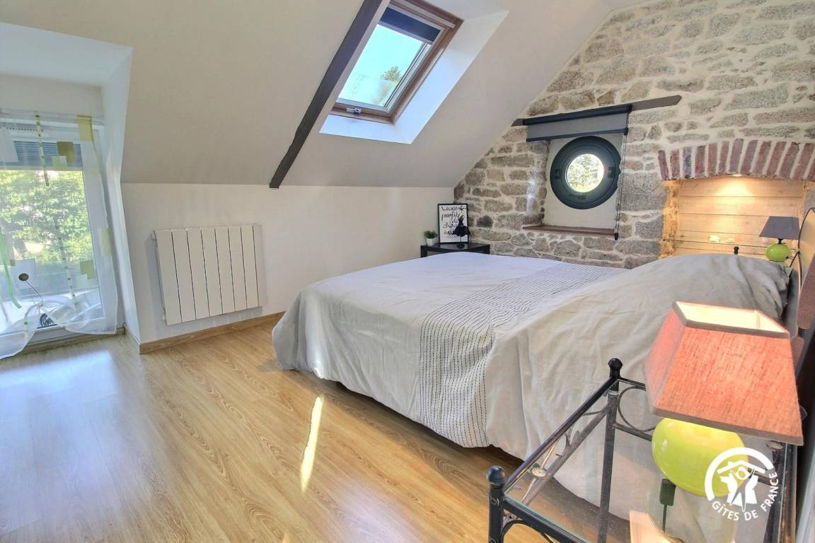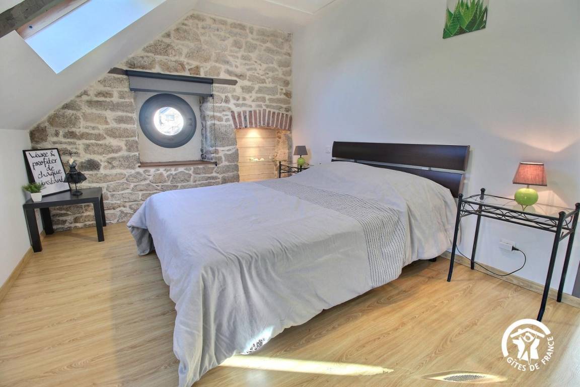 „Gîte très propre, très confortable décoré avec goût. Bon accueil par les propriétaires avec cadeau de bienvenu. Bien situé pour visité la région. Saint Nicolas des eaux, château de Suscino, village de la e Poul fêtant, très apprécié par les enfants la balade du père Nicolas, le p'tit délire“