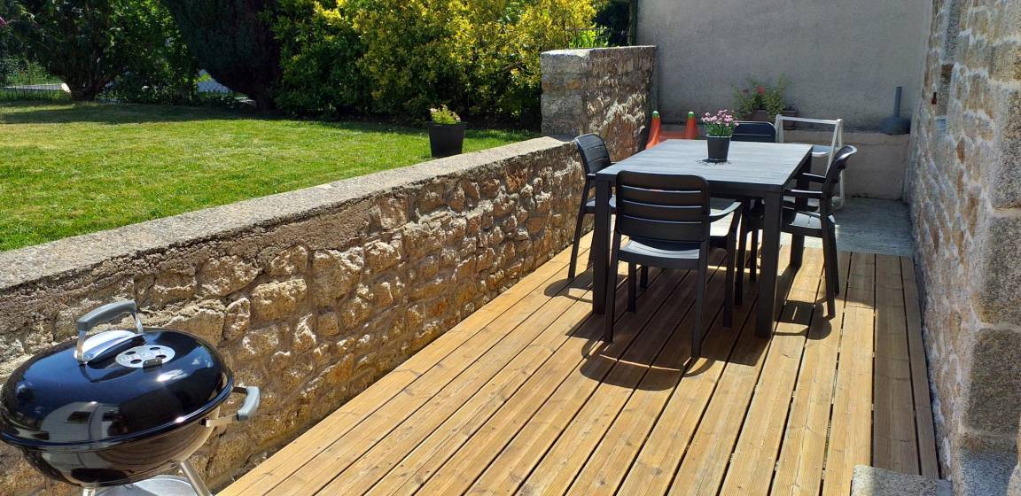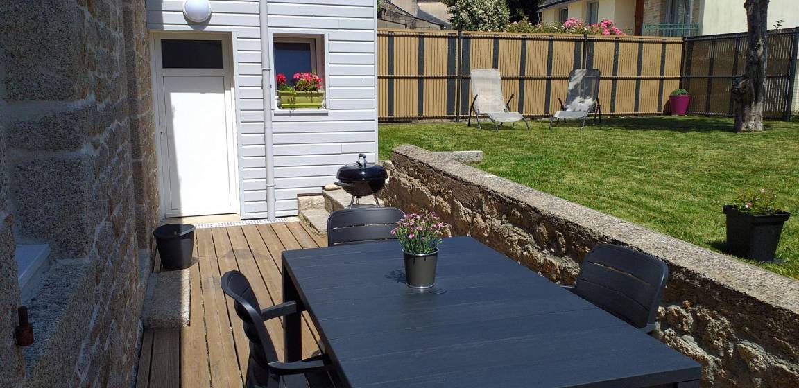 Sie brauchen dringend Urlaub? Tanken Sie frische Luft abseits vom Tumult an der Küste im Hinterland der Bretagne, ein herrlich natürliches Gebiet mit grünen Tälern, Flüssen und weitläufigen Ebenen. Zahlreiche Wanderwege, Steinkreuze und Kapellen, Landsitze und Schlösser, Brunnen und Mühlen, Parks und Gärten. In der Gegend sind einige Flüsse, in denen man angeln kann. Wunderbar Wassersport (Kajak, Kanu). Sehenswürdigkeiten: Mittelalterdorf, Kapelle, Hafen... Erlebnisparks für Kinder!Hübsches, renoviertes Haus unweit des Ortskerns. Erdgeschoss: Wohnbereich mit Kochecke, Essbereich und Wohnzimmer, WC separat mit Waschbecken und Waschküche. 1. Stock: 2 Zimmer, eines mit 1 Bett 140, das andere mit 2 Betten 90, Bad mit Dusche und WC. Im Freien: Holzterrasse und geschlossener Garten. Garage zur Verfügung, 1 Auto. Kostenfreier Parkplatz 50m. Zuzüglich Nebenkosten. Tischwäsche vorhanden. Ferienhaus anliegend an Ferienunterkunft, an der Straße gelegen, der Garten ist hinter dem Haus.