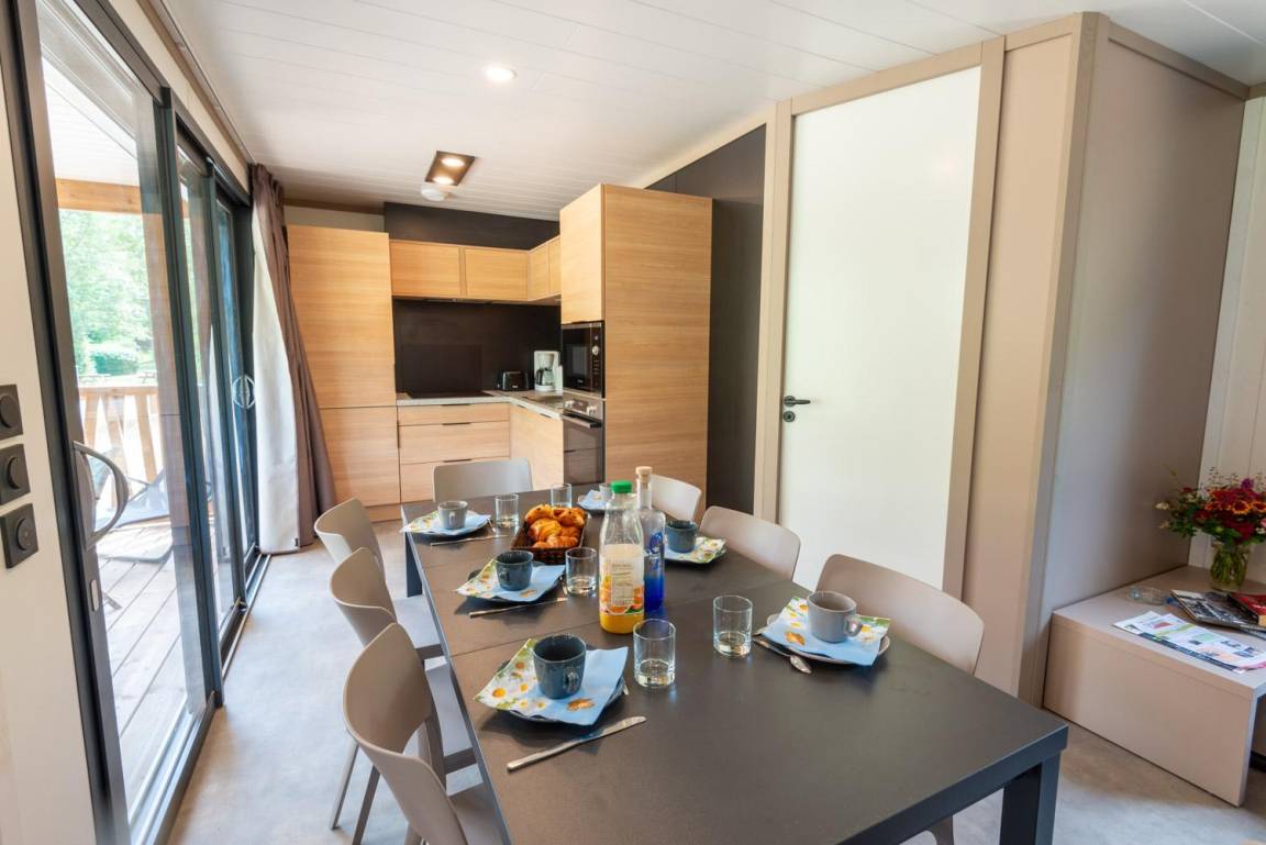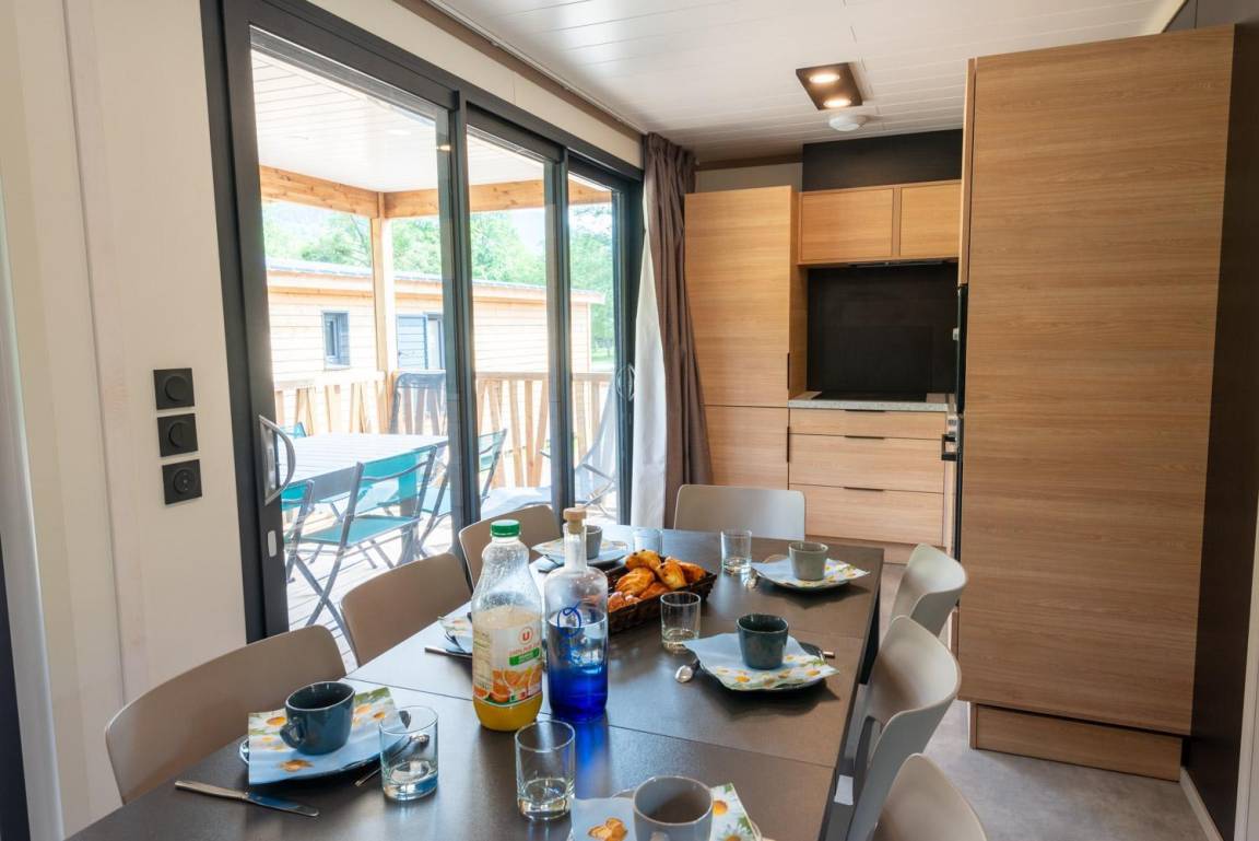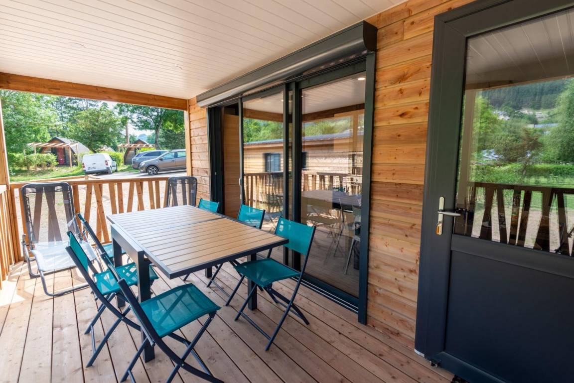 „Chalet spacieux et fonctionnel ! Tout est récent et l’électroménager est de qualité (marque Bosch) La vue est magnifique sur les montagnes de la Lozère Camping très calme, je recommande vivement“