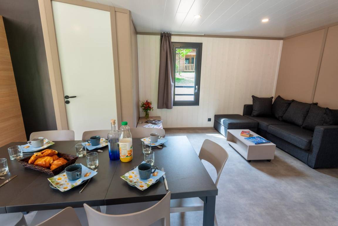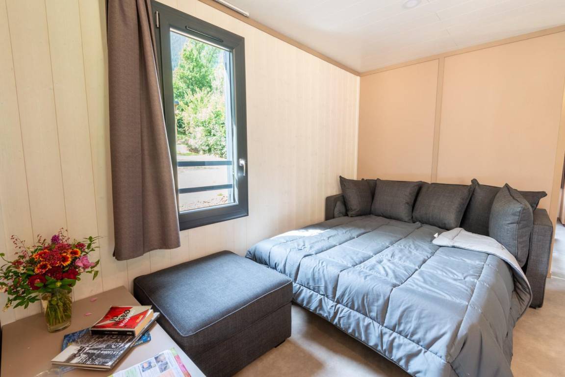 „Nous avons eu la primeur d’être les premiers à séjourner dans ce chalet flambant neuf. Équipements de qualité, bonne isolation, nous n’avons en aucun cas souffert de la chaleur. Chalet très fonctionnel, bien agencé, avec une vue magnifique. En prime, le jardin d’enfant du camping à proximité a ravi nos enfants. Lieu très agréable où il règne une ambiance apaisée.“