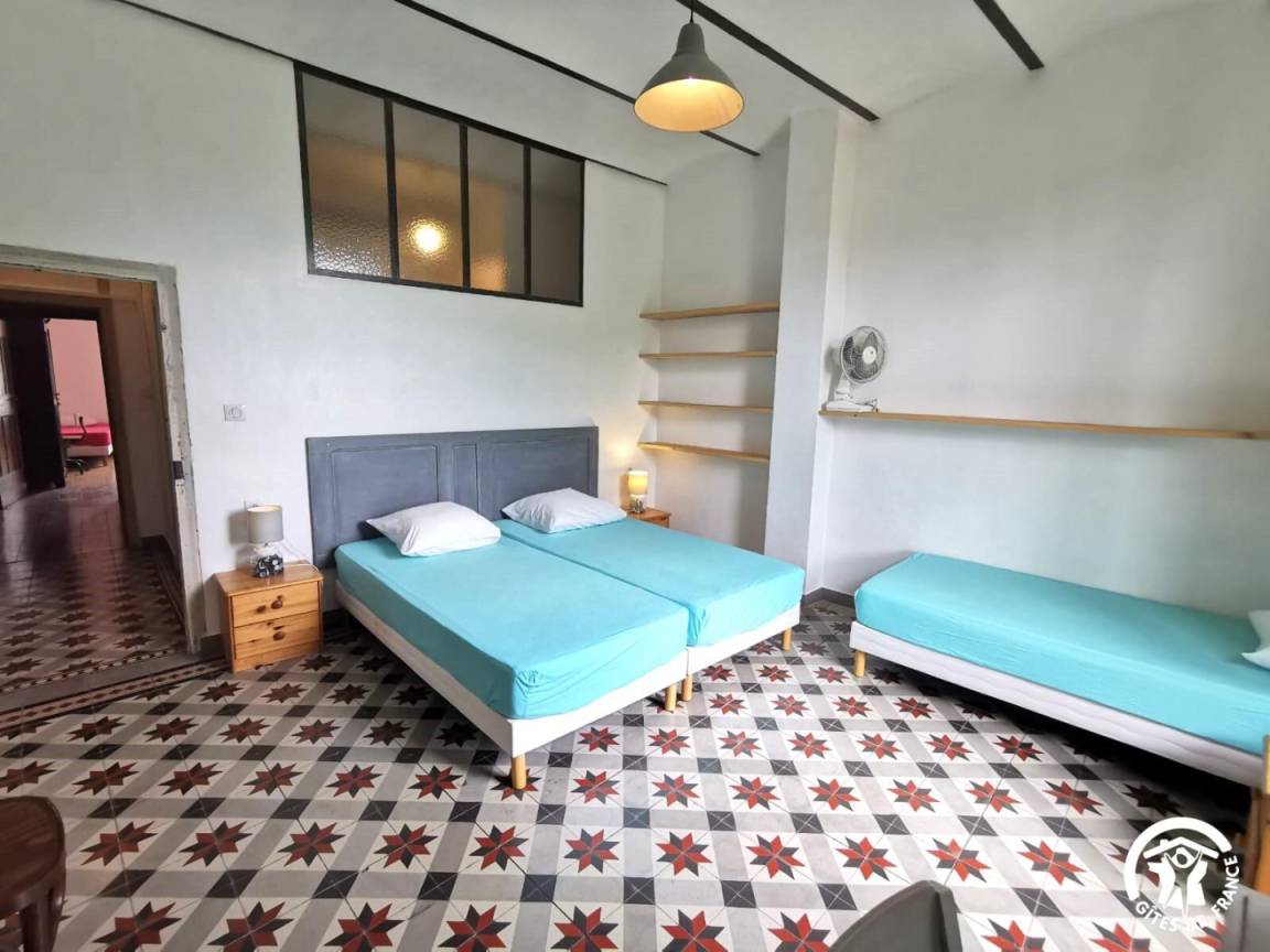 „Accueil sympathique de la propriétaire. Le gite est très grand, avec de nombreux couchages et salles d'eau, assez rustique, la déco ancienne et décalée fait partie de son charme. Cependant les couchages en haut sous les toits conviennent aux enfants s'il ne fait pas trop chaud uniquement. Les équipements, vaisselle, électroménager sont en quantité. Par contre pas de WIFI, ni de télévision. On s'est débrouillé avec le partage de connexion de nos téléphones. Le jardin arboré est agréable. Attention aux moustiques tigres qui sont très très nombreux. La situation est intéressante, avec la boulangerie et la boucherie ainsi qu'une fromagerie à deux pas dans la rue. On peut aller à pieds à la rivière. Nombreuses bases de canoë, très sympa à faire. Beaucoup de belles randonnées tout près. Vacances très agréables en famille (nombreuse).“