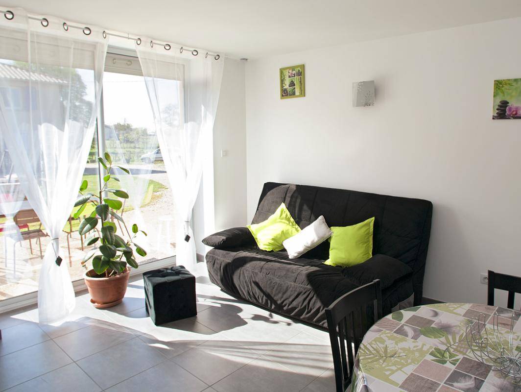 Die Gîte Coquelicot empfängt Sie auf einer Fläche von 64 m² mit einer zum Wohnzimmer hin offenen Küche, die mit einem ausziehbaren Sofa (140 x 190) ausgestattet ist.