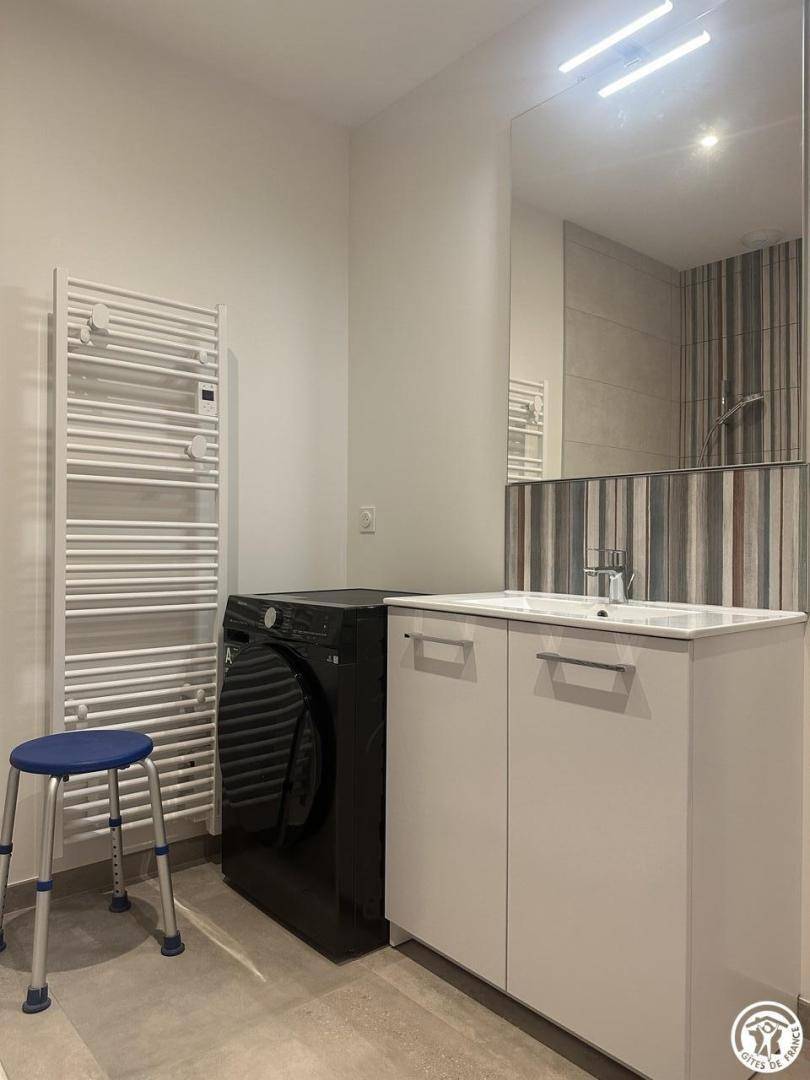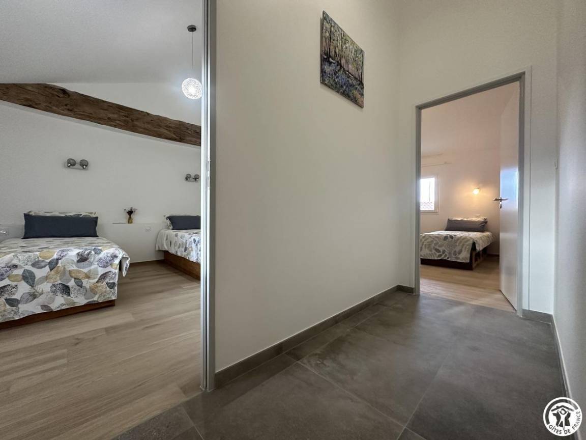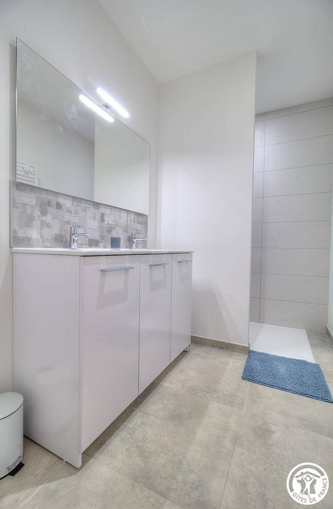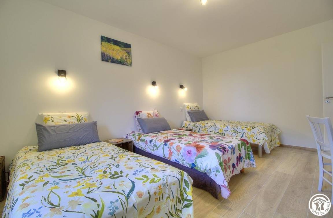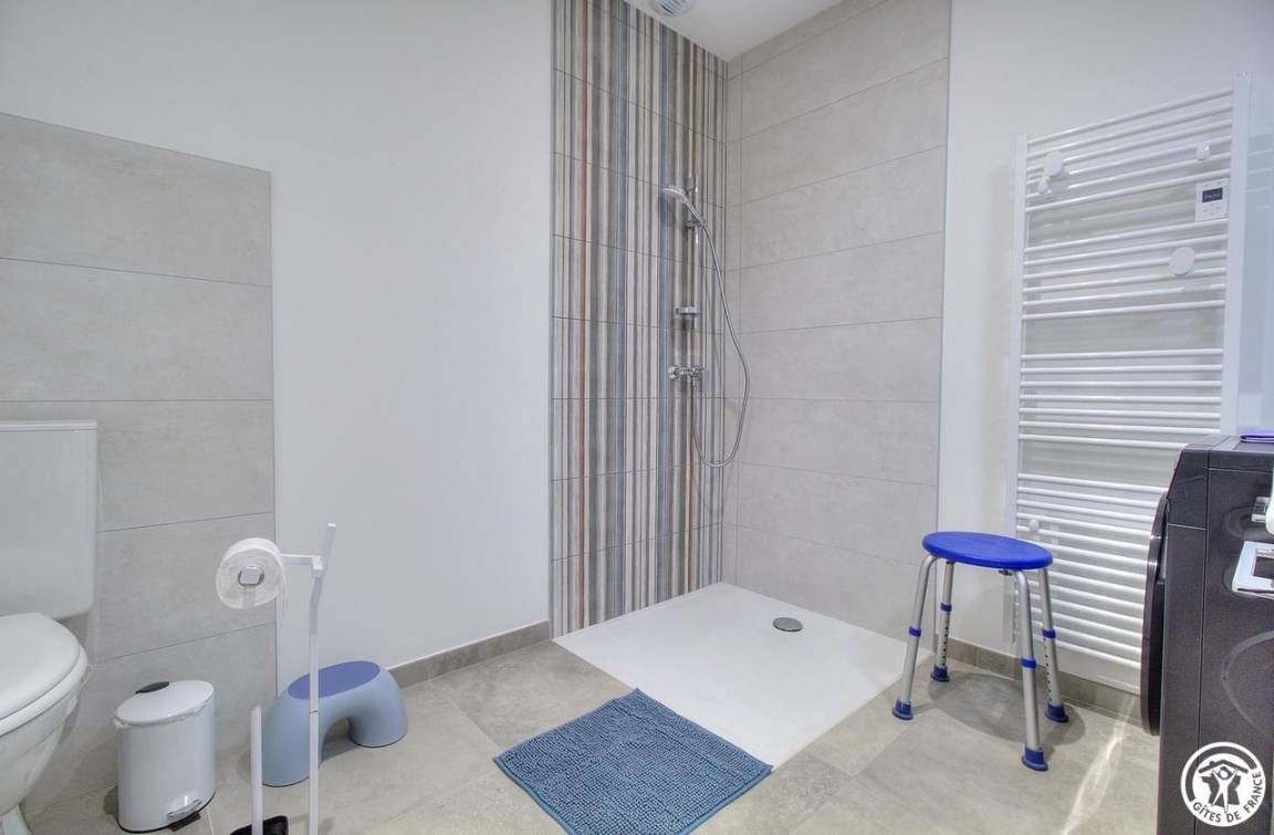 Im großen Erdgeschoss: offene Küche zum Wohnzimmer, 3 Schlafzimmer, 2 Schlafzimmer mit einem 140x190-Bett (eines davon ist für Personen mit eingeschränkter Mobilität zugänglich) und 1 Schlafzimmer mit 3 90x190-Betten. 2 Badezimmer, 1 davon mit integriertem WC. Eine separate Toilette. Im 1. Stock: Wohnzimmer mit Spielbereich, 2 Schlafzimmer (1 mit 2 90x190-Betten und 1 mit 1 140x190-Bett und 1 90x190-Bett), separates WC.