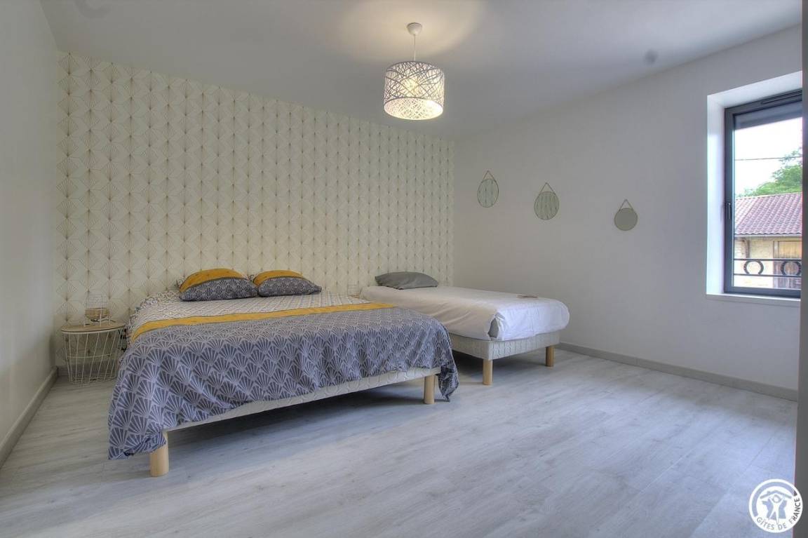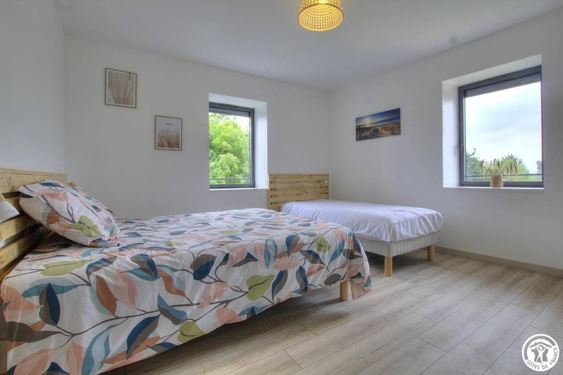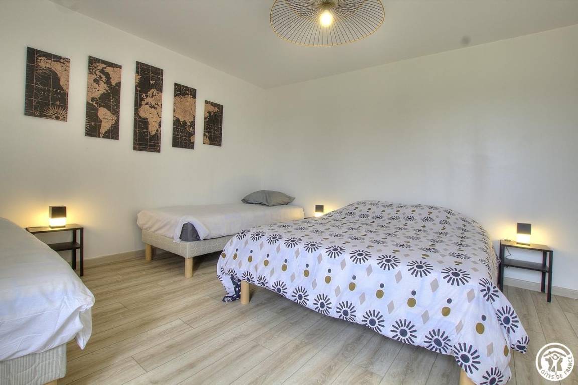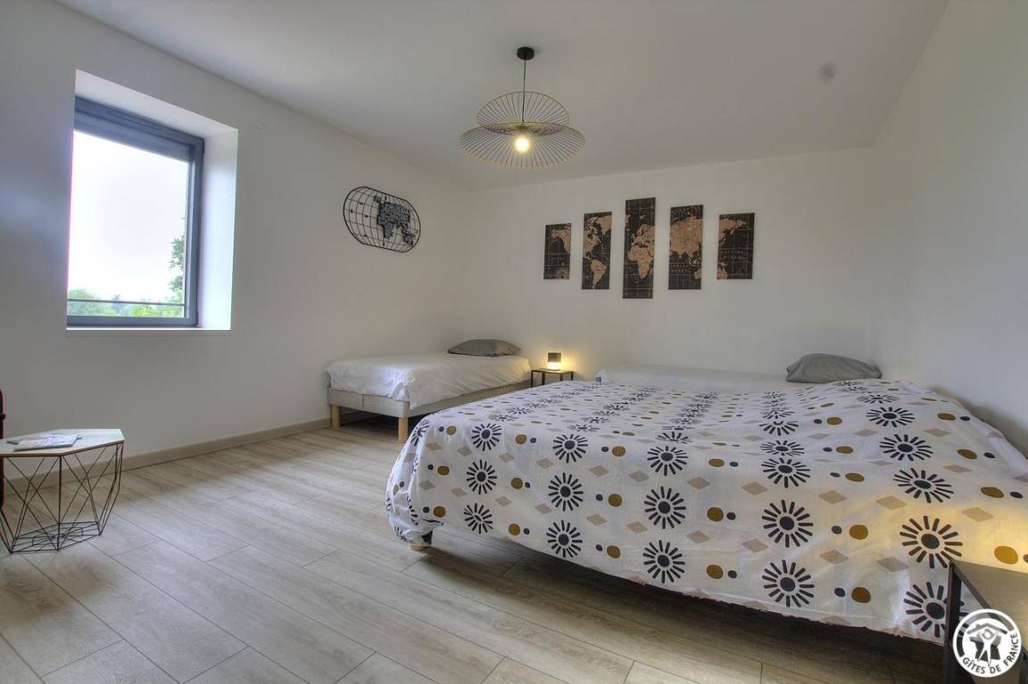 Im Obergeschoss befinden sich 4 weitere Schlafzimmer: ein wenig „exotisch" für dieses Zimmer mit Zugang zum Balkon (1 140*190-Bett), das Chic-Zimmer für 3 Personen (1 160*200-Bett und 1 90*200-Bett), das Sie zum Reisen wählen können Entdeckungszimmer für 4 Personen (1 Bett 160*200 und 2 Betten 90*200), für einen Moment in der Natur, dann ist dieses Zimmer für 3 Personen genau das Richtige für Sie (1 Bett 160*200 und 1 Bett 90*200). Ein Pluspunkt: Alle Zimmer sind mit einem Badezimmer und einer eigenen Toilette ausgestattet. Bezogene Betten bei Ankunft, Handtücher und Nebenkosten inklusive. Für die Reinigung wird ein Betrag von 110 € erhoben. Ölheizung.