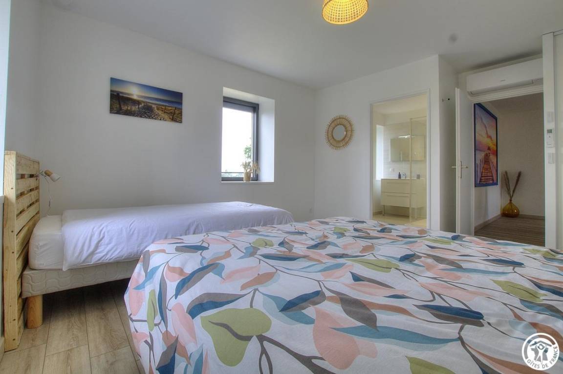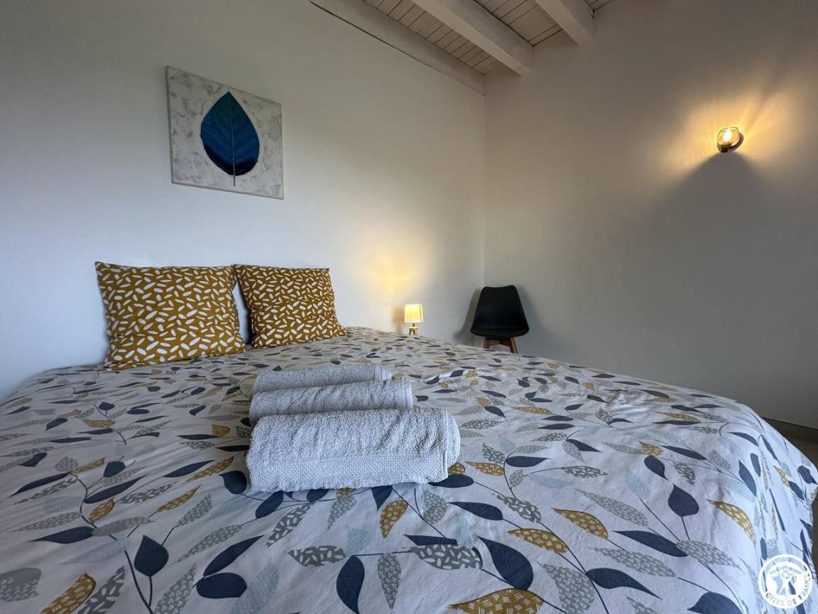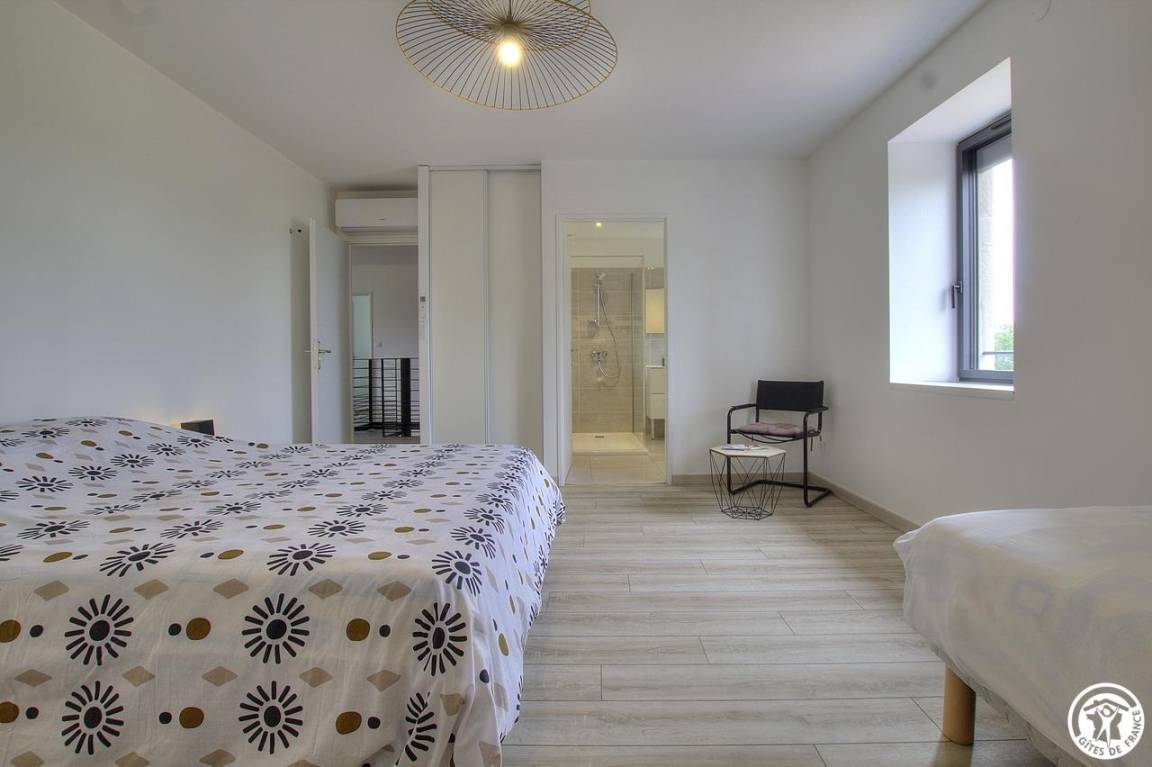 Im Obergeschoss befinden sich 4 weitere Schlafzimmer: ein wenig „exotisch" für dieses Zimmer mit Zugang zum Balkon (1 140*190-Bett), das Chic-Zimmer für 3 Personen (1 160*200-Bett und 1 90*200-Bett), das Sie zum Reisen wählen können Entdeckungszimmer für 4 Personen (1 Bett 160*200 und 2 Betten 90*200), für einen Moment in der Natur, dann ist dieses Zimmer für 3 Personen genau das Richtige für Sie (1 Bett 160*200 und 1 Bett 90*200). Ein Pluspunkt: Alle Zimmer sind mit einem Badezimmer und einer eigenen Toilette ausgestattet. Bezogene Betten bei Ankunft, Handtücher und Nebenkosten inklusive. Für die Reinigung wird ein Betrag von 110 € erhoben. Ölheizung.