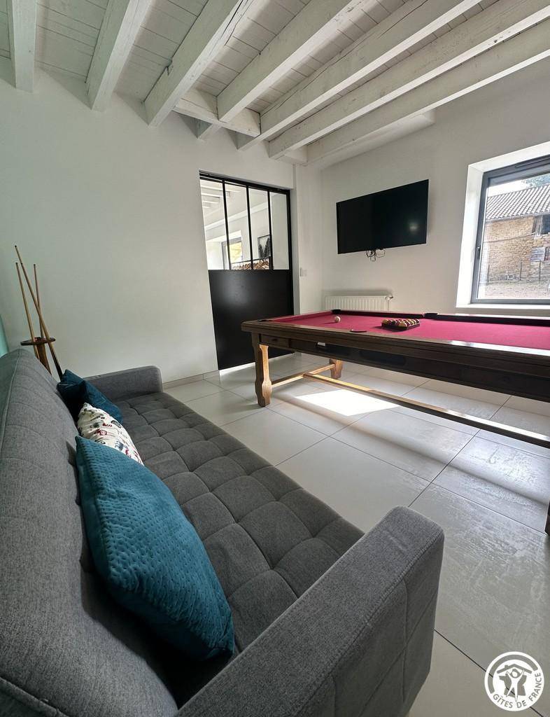„Excellent séjour dans ce gîte très fonctionnel et spacieux. Jeux pour les enfants, foot, ping-pong, et table de billard qu'ils ont apprécié. Nous recommandons fortement.“