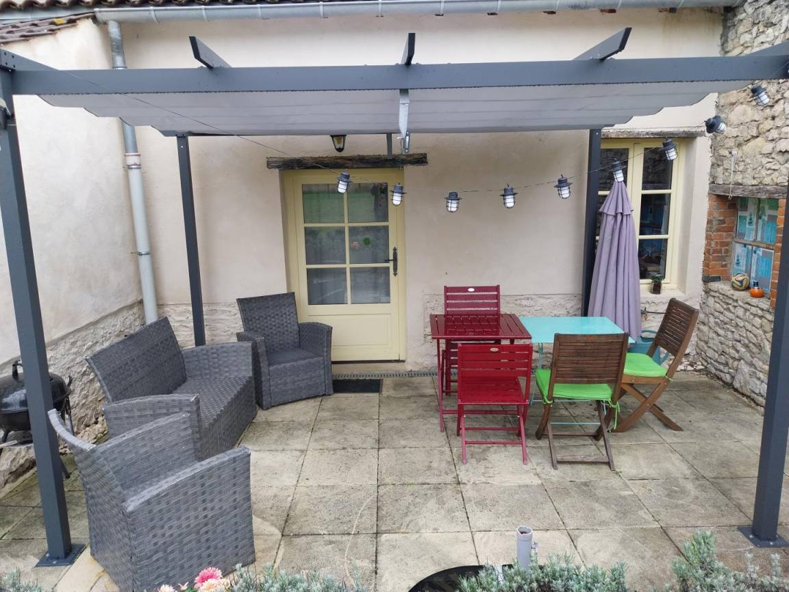 In einer Gasse des Dorfes gelegen, hat dieser ehemaligen Tischlerei-Workshop im weißen Stein erbaut mit traditionellen und ökologischen Materialien (Hanf, Holzwolle) rehabilitiert worden. Das innere, arrangiert für 4 bis 5 Personen ist komfortabel mit schönen Bände. Erdgeschoss: Esszimmer und Küche offen auf eine Terrasse und einen Garten (400 m ²) mit Blick auf Dekrets Wohnzimmer mit Pellet-Ofen eine schöne Elements der Dekor 1 Schlafzimmer (1 Bett 2 pers.), 1 Zimmer (3 Betten 1 pers.), italienischer Dusche, wc. Bo. Electric. Tel und Livebox. Das Gericht auf der Straßenseite wird ebenfalls geschlossen. Charroux Dorf mittelalterlichen 4 km. Ébreuil 5 Meilen. Fluss La Sioule 4 km.