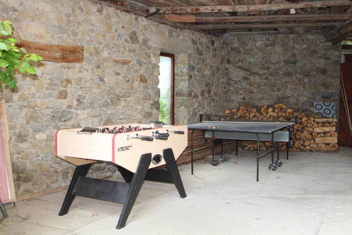 „Grand gîte avec une dépendance ping pong babyfoot idéale pour des ados ou en cas de pluie, proche du bourg pour les courses mais dans la verdure. Beaucoup de randos tout autour, avec des niveaux de difficulté différents. Tout est simple et pratique!“