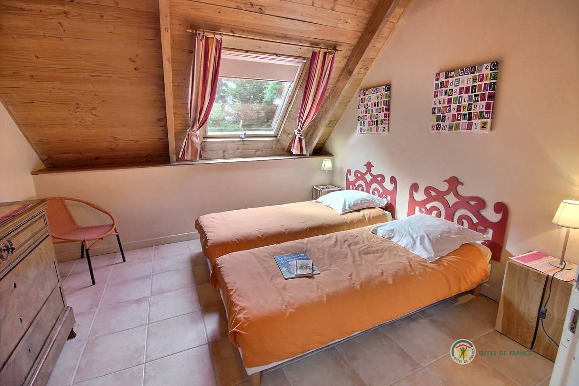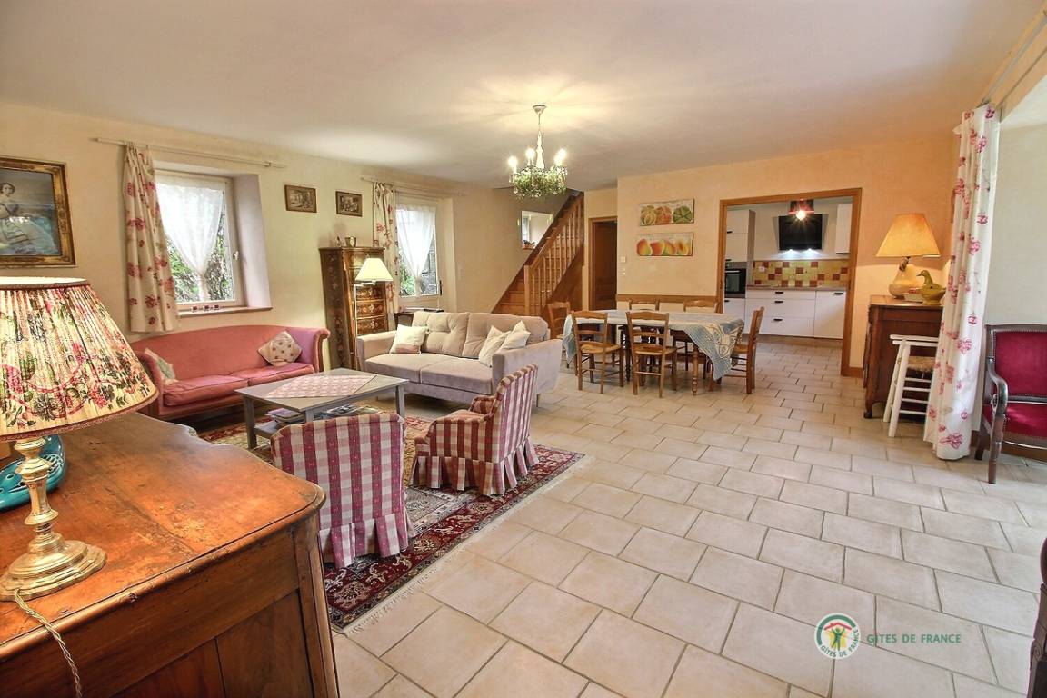 Ihre Ferienwohnung umfasst im Erdgeschoss: eine voll ausgestattete Küche, ein gemütliches Wohnzimmer – Lounge (mit Herd), erweitert durch eine nach Süden ausgerichtete Veranda. Fernseher (Flachbildschirm) + DVD. Schlafzimmer (1 Doppelbett) mit eigenem Duschbad und WC, Wäscheraum. Erster Stock: ein großes Spielzimmer, zwei Schlafzimmer (1 Doppelbett, 2 Einzelbetten), Badezimmer, WC. Alle Betten können in ein großes 160x200-Bett oder zwei 80x200-Betten umgewandelt werden. Privater Garten von 1000 m². Preis 10€/Tag für Pferde. Kostenloser Service: Sie bestellen Ihre Lebensmittel bei Leclerc, die Besitzer holen sie am Drive-in ab und füllen Ihre Schränke und Ihren Kühlschrank. NEU ! Eine Schaukel und ein Trampolin werden Ihre Kinder im nächsten Urlaub begeistern! mögliche Anmietung des Erdgeschosses (außer in den Schulferien) für 2 Personen.