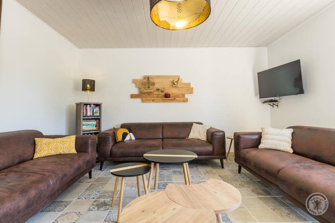 „Le gîte est grand, bien agencé et permet de se retrouver à nombreux sans gêne aucune. La cuisine et les équipements sont adaptés (deux frigos, deux lave-linge) des espaces communs multiples. Le Jacuzzi / sauna est agréable mais le sol est très glissant. Les propriétaires sont à l'écoute et très réactifs. La literie mériterait d'être changée à terme.“