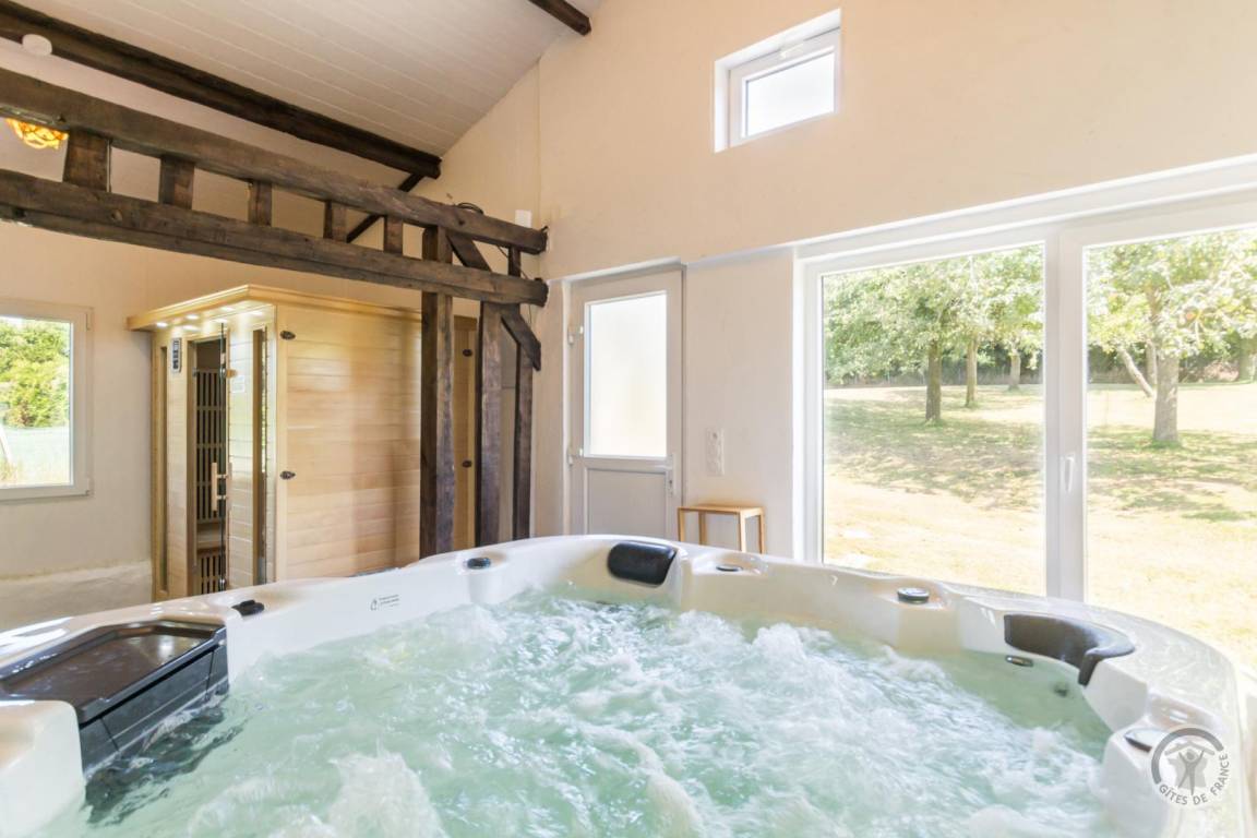 „Nous avons passé un agréable long weekend en famille. Merci aux propriétaires pour leur disponibilité et leur gentillesse. Les espaces sont bien pensés, intérieur et extérieur. Il y a de la place pour tous le monde ! Nous avons profité de la terrasse et du terrain de pétanque la journée et de la salle à manger, salon le soir et du spa à tout moment! C'était parfait ! Une idée pour la suite, une table de ping-pong et/ou qq vélos, le lieu s'y prete beaucoup. Il faudra revenir pour explorer davantage la région !“