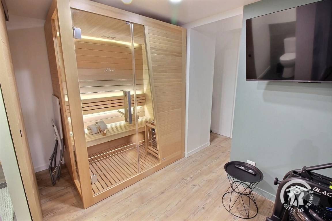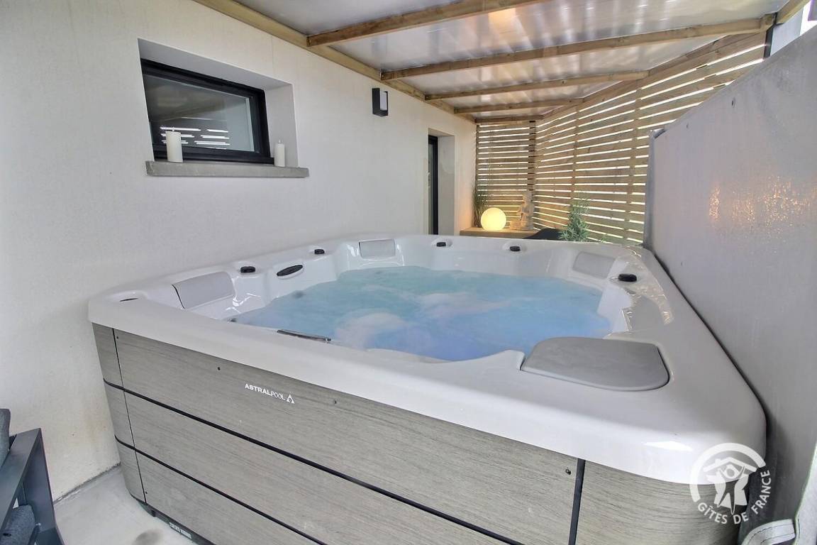 Genießen Sie einen privaten Whirlpool für 6 Personen auf der geschützten Terrasse sowie eine Sauna und einen Fitnessraum im Keller für Momente der Entspannung und des Wohlbefindens.