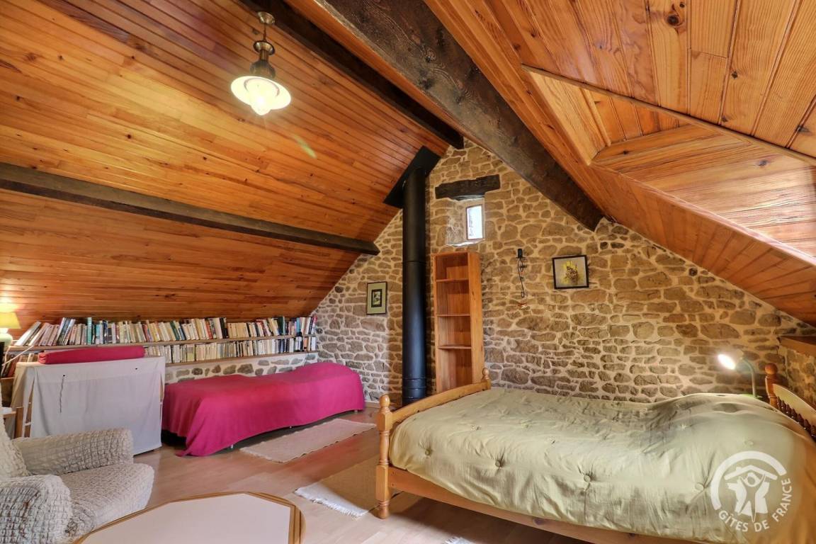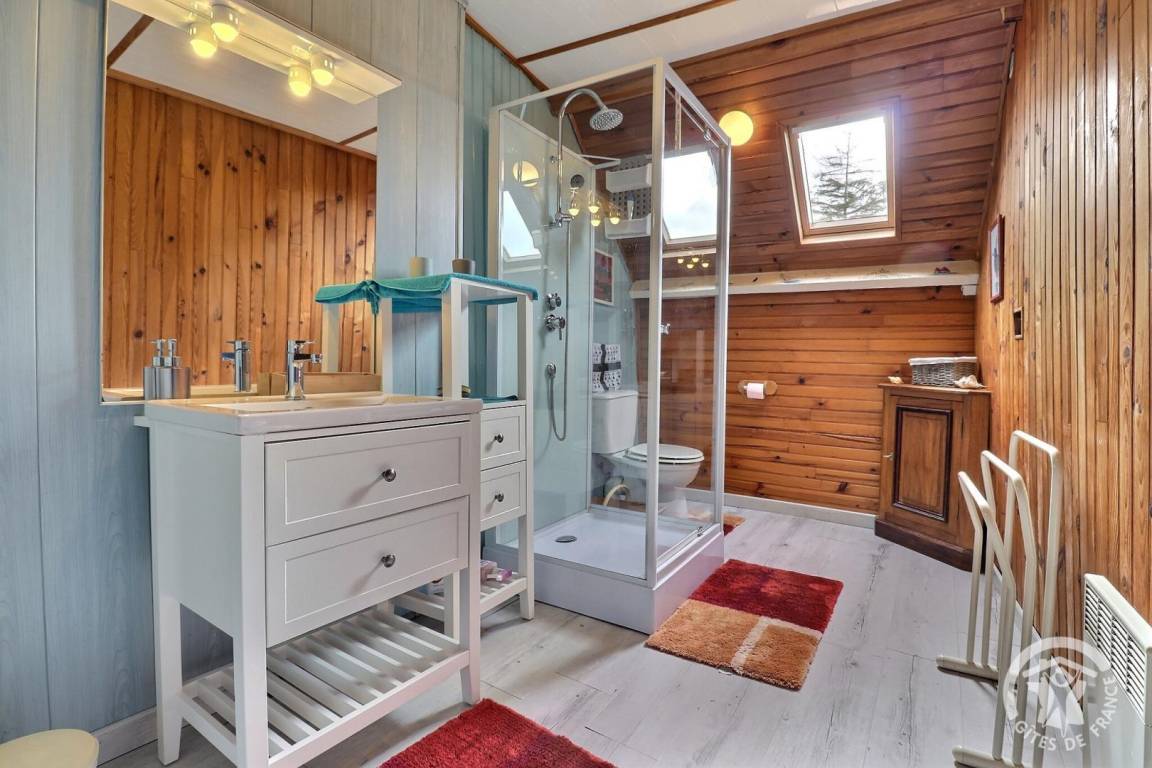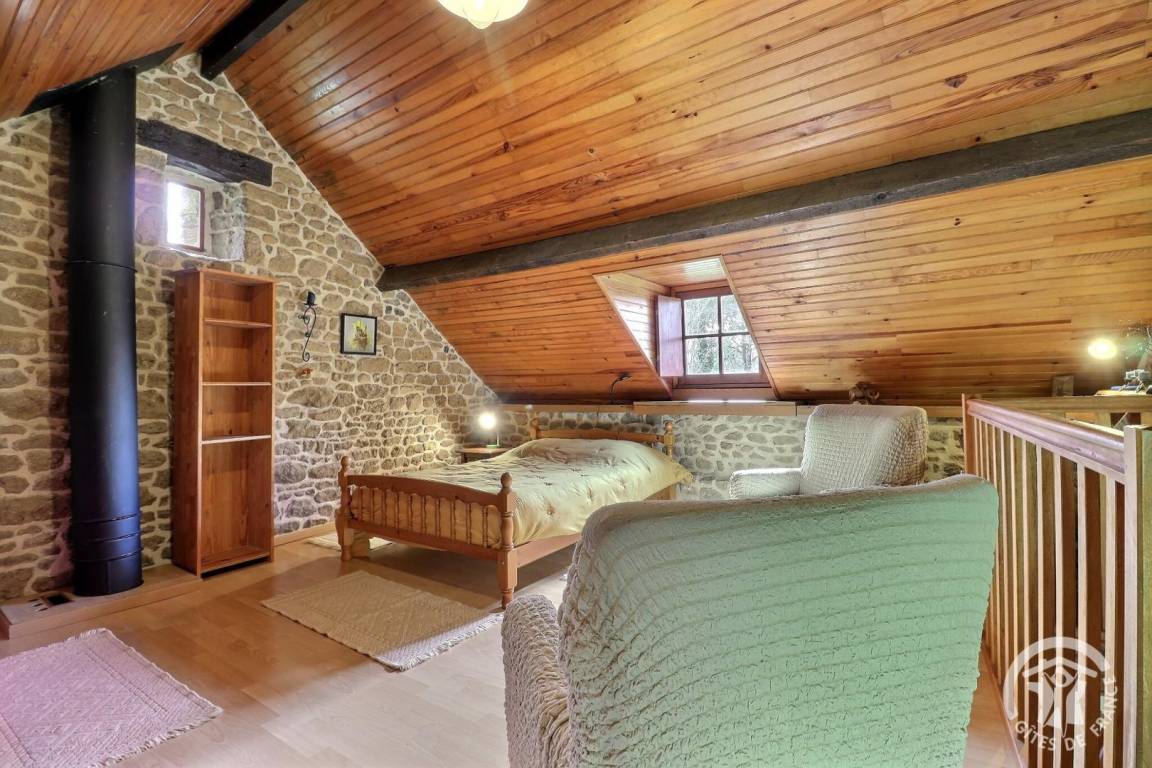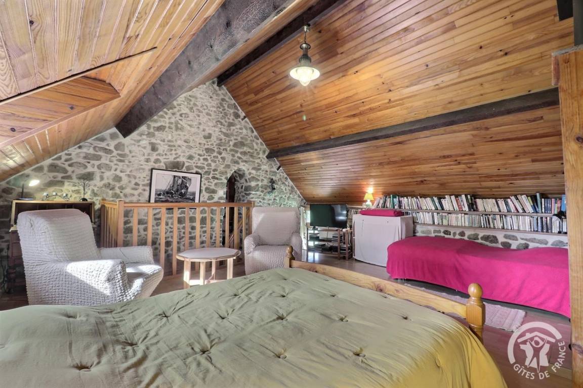 Im EG: Wohnbereich Esszimmer mit Schlafcouch, Kochecke und Holzofen (Gesellschaftsspiele zur Verfügung). Im Stockwerk: großes Schlafzimmer (1 Doppelbett und 1 Einzelbett), Wohnzimmerecke mit Fernseher (DVD), Bad mit Dusche, WC, elektrische Heizung.
