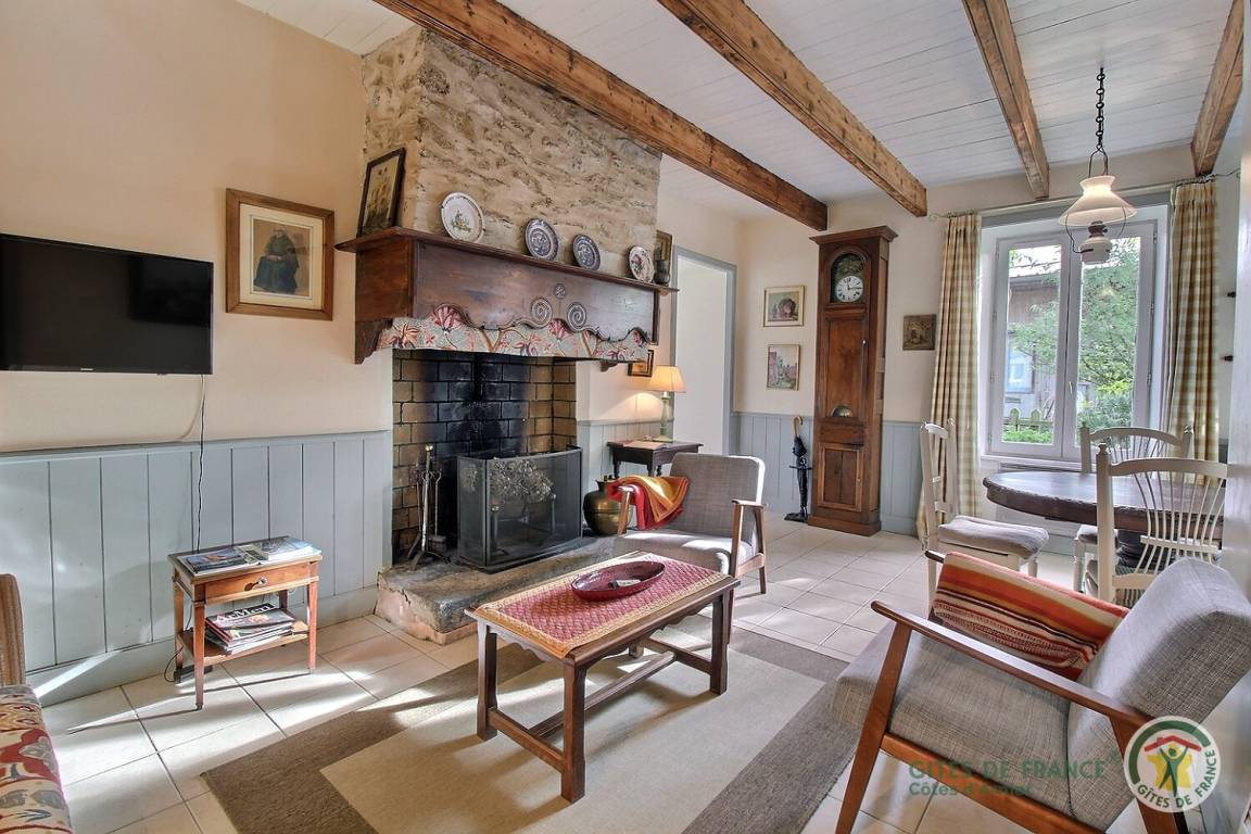Ihr Ferienhaus umfasst auf einer Ebene: Voll ausgestattete Küche, Wohnzimmer mit dekorativem Kamin, 2 Schlafzimmer (1 Doppelbett, 2 Einzelbetten 0,90 x 2,00), separates WC, Badezimmer mit ebenerdiger Dusche und WC. Garten von 45 m² und geschlossener Hof von 42 m².