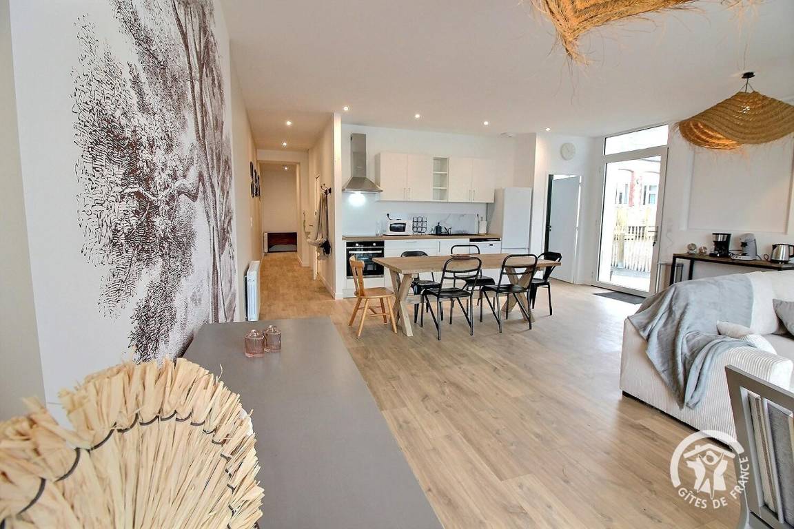 „Nous avons passé un très bon séjour dans ce nouveau gîte, toute la famille est ravie. Le gîte est spacieux, très lumineux, la vue dégagée sur les jardins partagés et au loin la mer est très apaisante. Au niveau équipement, rien ne manque, tout y est pour cuisiner et partager de bons repas sur la grande table de la pièce principale, il y a 2 salles de bain et 2 WC, de quoi faire sa lessive… il n’y manque rien. Il ne faisait malheureusement pas assez chaud (printemps - semaine froide) pour profiter pleinement de la terrasse et du petit jardin, mais ce n’était pas l’envie qui nous manquait. L’accueil a été très agréable, les propriétaires sont discrets mais de bons conseils, et très gentils. La situation du gîte combine calme et pratique: La poissonnerie et la boucherie sont tout proches (3 min), la magnifique plage principale de Saint-Cast et les commerces/restaurants accessible à pieds (10-15min).Il y en a pour tous les goûts: Visites de lieux à vous couper le souffle (Fort La Latte, Cap Frehel, …), et de très grandes plages magnifiques. Les enfants et les parents veulent y revenir !“