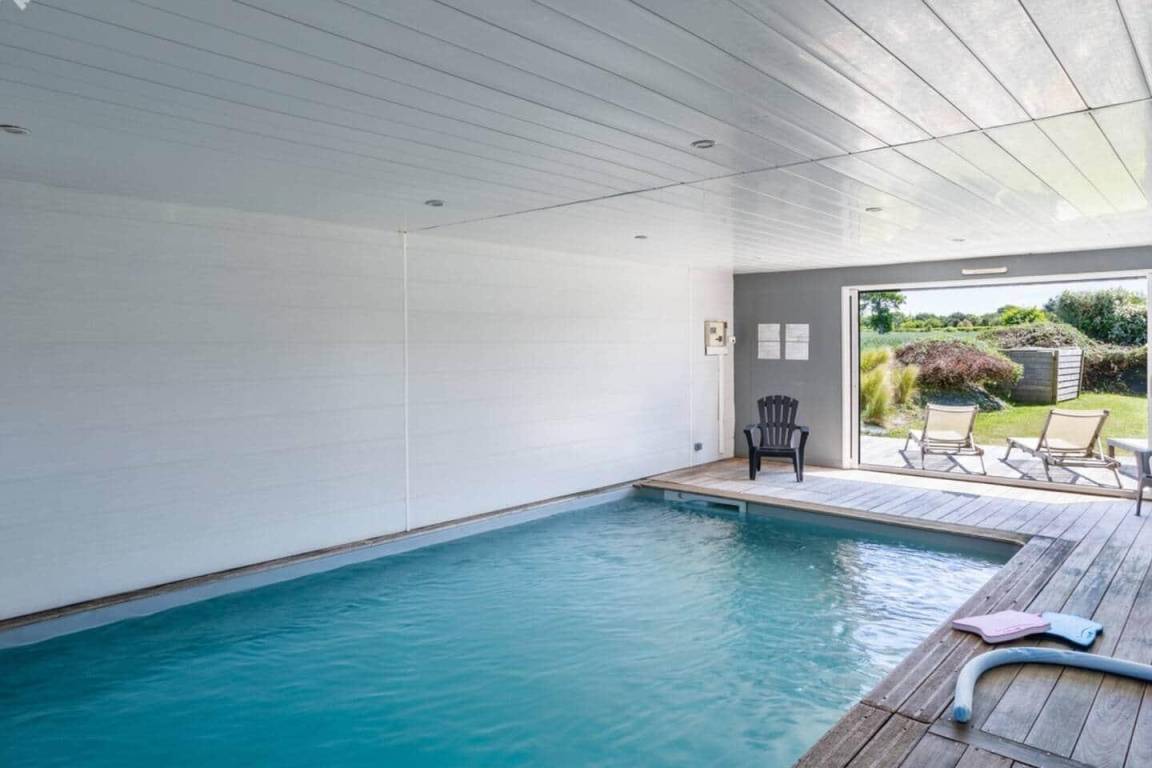 • Beheizter Innenpool (7 x 4 m / 50 m²) mit sicherem Außenzugang, geöffnet vom 1. bis 15. April, mit Zugang zu großer Terrasse und Garten
