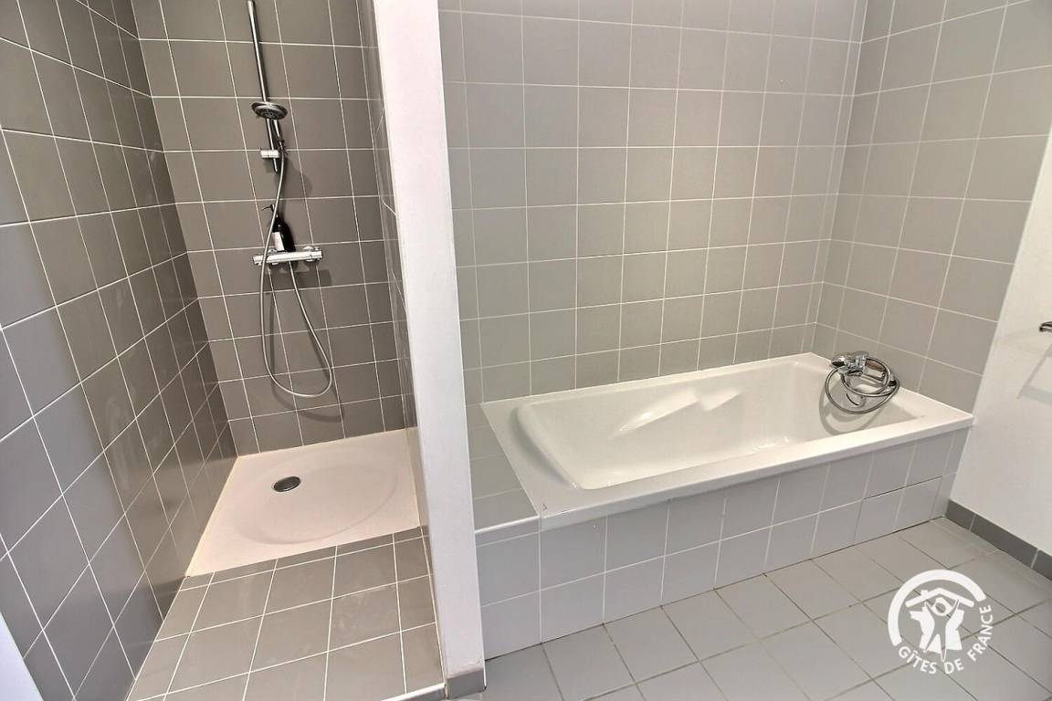 • Badezimmer mit Dusche und Badewanne