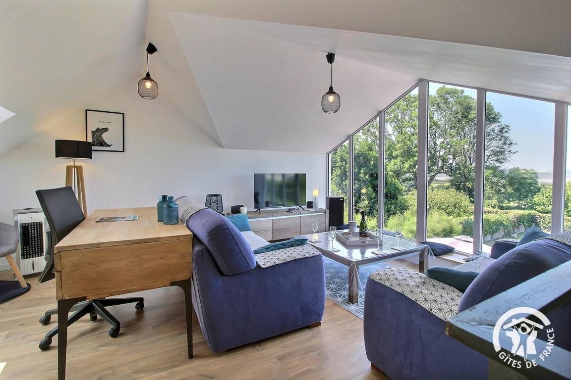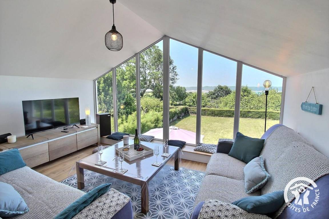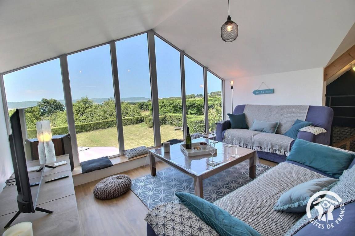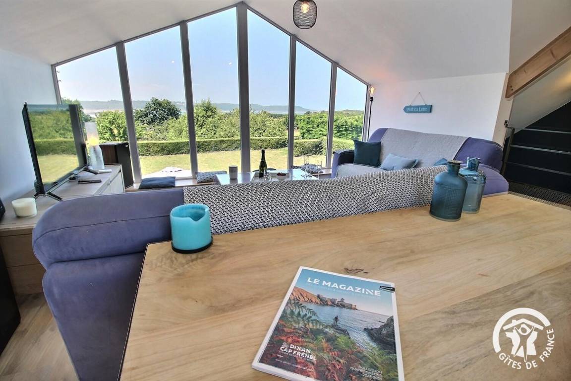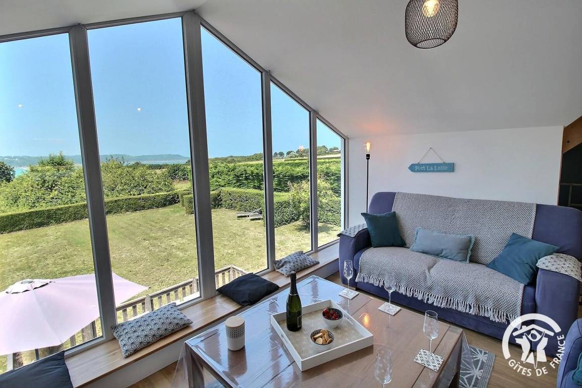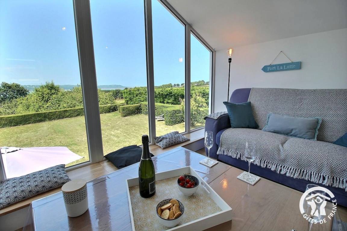 Genießen Sie vom Wohnzimmer aus einen atemberaubenden Panoramablick auf das Meer und das berühmte Fort La Latte.