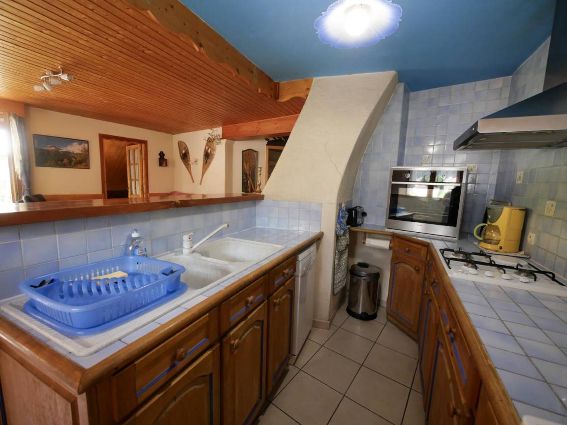 Es verfügt über ein großes, einladendes Wohnzimmer mit Kamin, großem Familientisch und Fernseher sowie eine 12 m² große Terrasse mit herrlichem Bergblick. Die offene Küche ist komplett ausgestattet mit Backofen, Geschirrspüler, Kühlschrank, Gefrierschrank, Mikrowelle sowie Raclette- und Fondue-Sets für köstliche Mahlzeiten nach einem erlebnisreichen Tag.