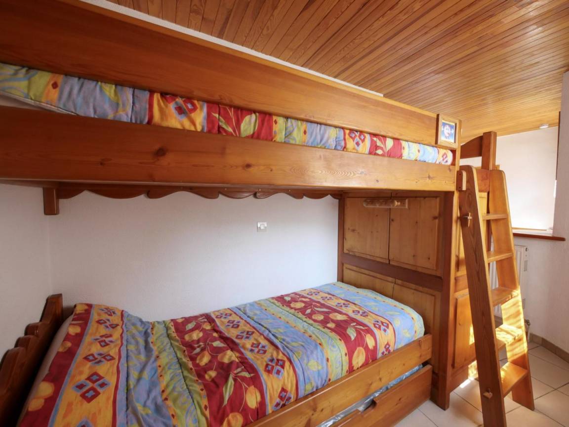 Der Schlafbereich umfasst ein Schlafzimmer mit Doppelbett, einen Schlafbereich mit zwei Einzelbetten und Waschbecken, ein zweites Schlafzimmer mit Doppelbett und Waschbecken sowie eine Bergecke mit zwei Etagenbetten, die in den Spielbereich integriert sind. Das Apartment verfügt außerdem über zwei Badezimmer, zwei separate Toiletten und eine Waschmaschine. Private Parkplätze sowie ein Ski- und Fahrradraum stehen zur Verfügung. Im Winter können Sie das Sk