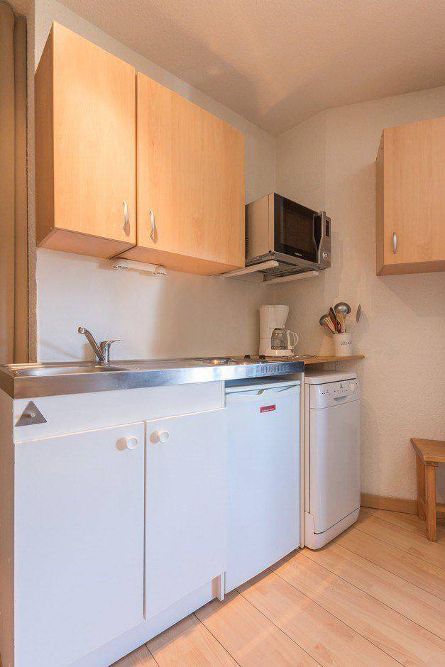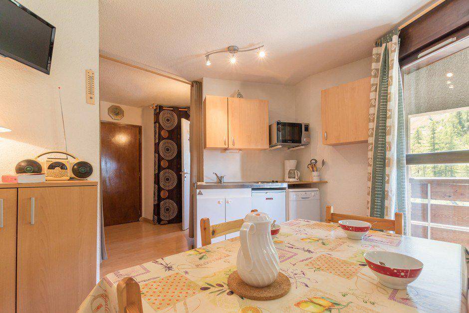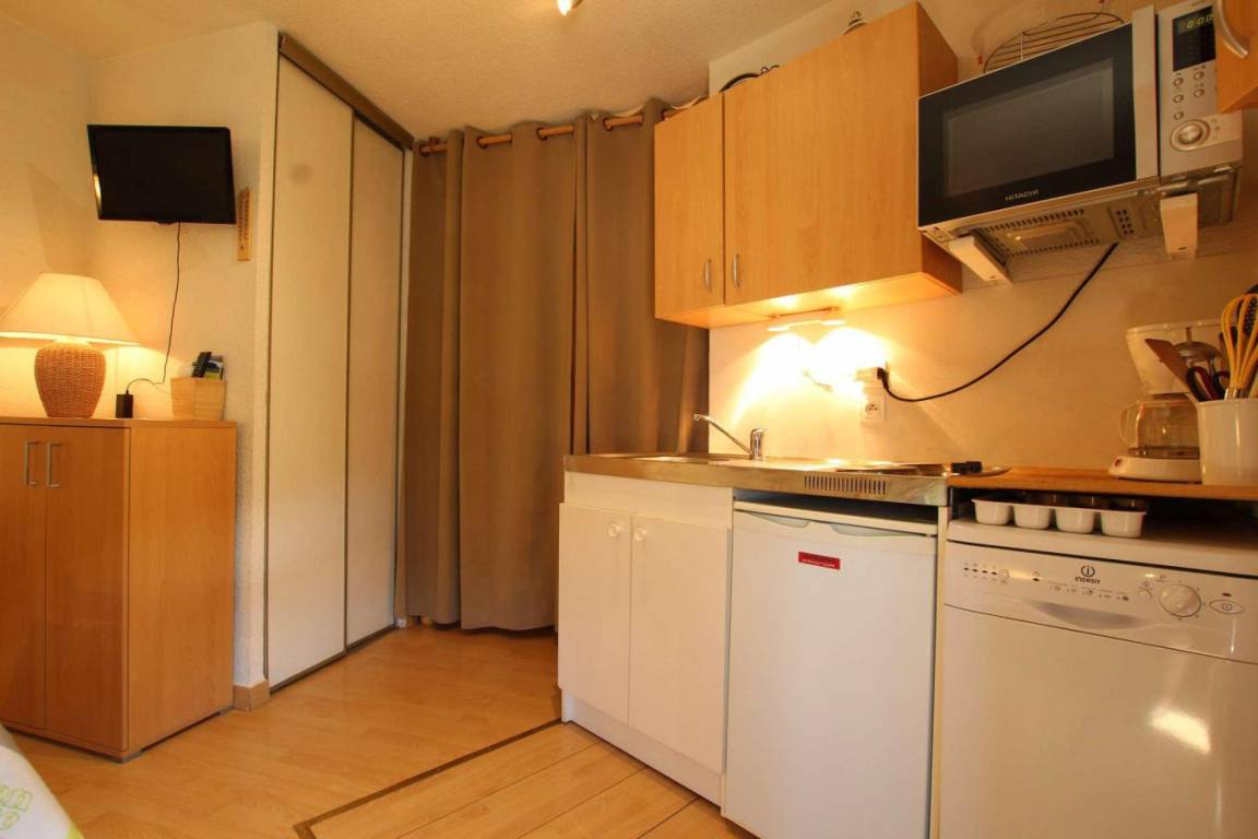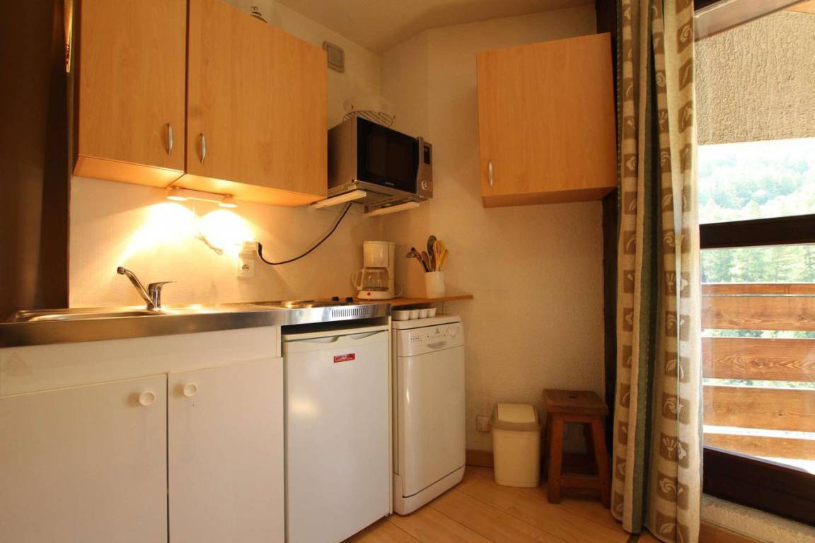 Fläche von ungefähr 23 m². 3te Etage. Orientierung : Süd, West. Blick skipisten. Wohnzimmer mit Klappschlafcouch (140). offener Schlafbereich mit 2 Stockbetten. Kochnische mit Raclettegerät, Wasserkocher, Kaffeemaschine, Toaster, Geschirrspülmaschine, Mikrowellenherd, 2 elektronische Herdplatten, Kühlschrank. Badezimmer mit Badewanne, Waschbecken, WC. Balkon mit Gartentisch und -stühle. Die oberen Betten sind nicht für Kinder unter 6 Jahren geeignet.