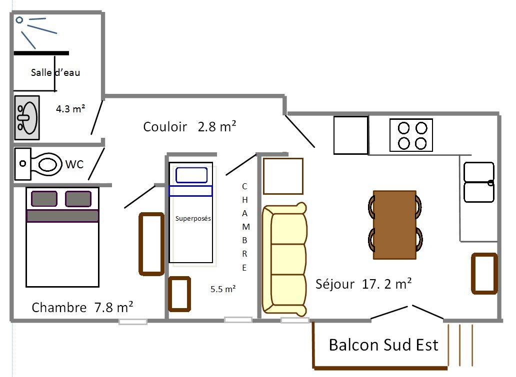 40 m² Gîte ∙ 2 Schlafzimmer ∙ 4 Gäste