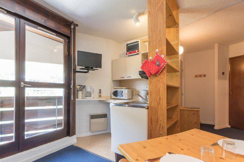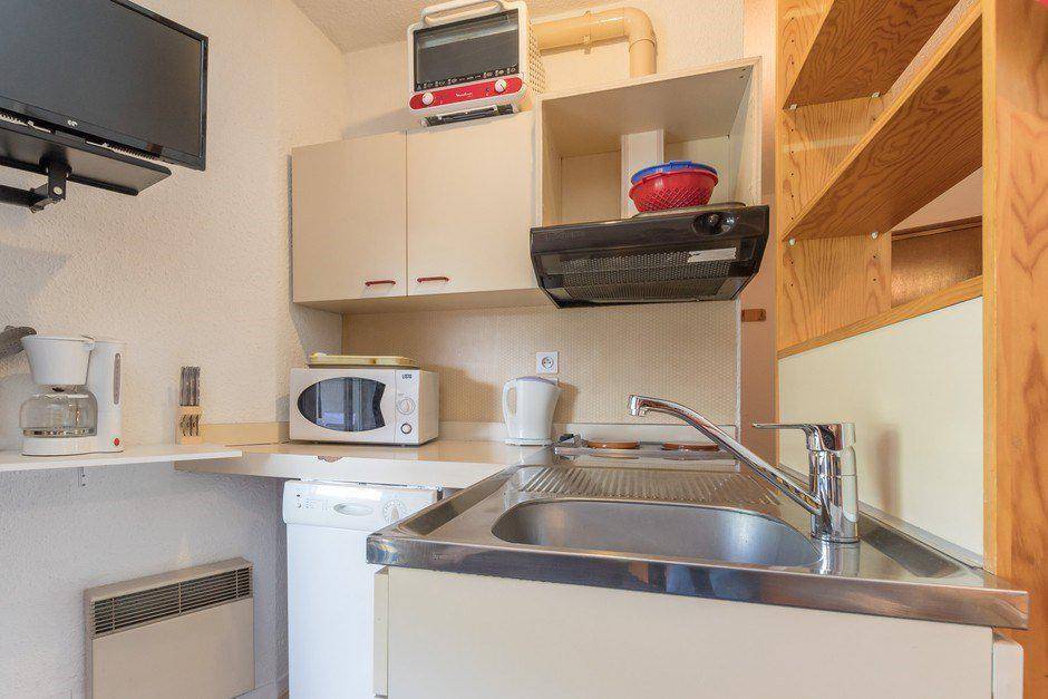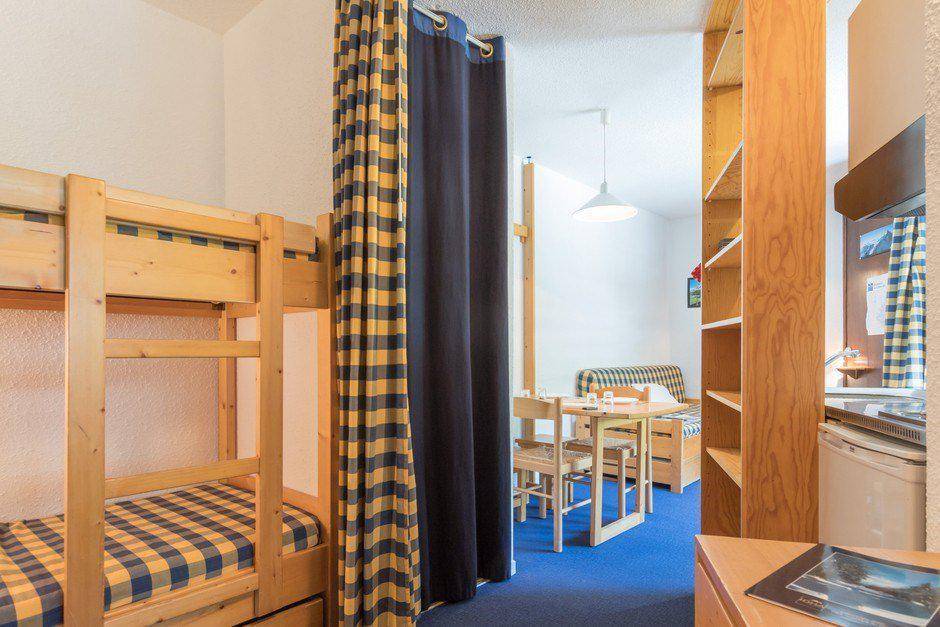 Fläche von ungefähr 22 m². 3te Etage. Orientierung : Nord, West. Blick station. Wohnzimmer mit 2 Ausziehbetten. offener Schlafbereich mit 2 Stockbetten, Vorhang zum schließen. Küche mit Kaffeemaschine, Geschirrspülmaschine, Mikrowellenherd, kleiner Backofen, 2 Herdplatten, Kühlschrank. Badezimmer mit Badewanne, Waschbecken, WC. Balkon. Die oberen Betten sind nicht für Kinder unter 6 Jahren geeignet.