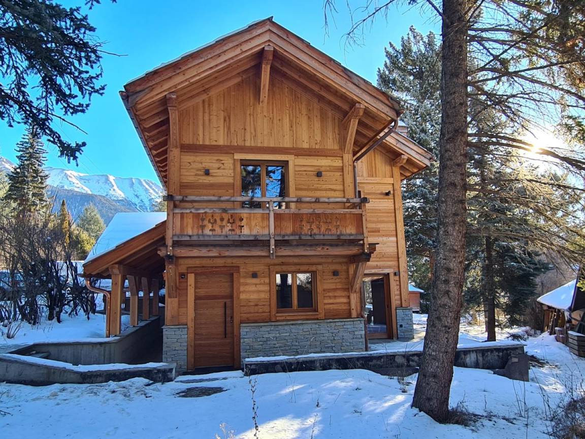 Liegt in Saint-Chaffrey, einem Dorf in der Nähe des Ferienortes Serre-Chevalier. Gîte in einem geräumigen Chalet für bis zu 10 Personen. Ein angenehmer Wohnraum mit voll ausgestatteter Küche, Sitzecke mit Holzofen und TV sowie einem freundlichen Essbereich. Vom Wohnzimmer aus gelangt man auf eine 20 m² große Südterrasse mit Gartenmöbeln, Grill, Plancha und Sonnenschirm. 5 Schlafzimmer verteilt auf 3 Ebenen (2 Doppelbetten 160x200cm, 1 Bett 140x190cm und 4 Betten 80x190cm). 2 Badezimmer und 3 separate Toiletten. Wi-Fi-Verbindung. Parkmöglichkeiten direkt vor der Unterkunft. Zugang zu zahlreichen Wanderwegen (100 m), in der Nähe von Geschäften (150 m), dem Skigebiet Serre Chevalier (6 km) und den Grands Bains de Monêtier (10 km).