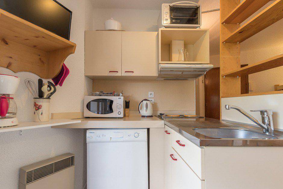 Fläche von ungefähr 22 m². 2te Etage. Orientierung : Nord, West. Blick station. Wohnzimmer mit Ausziehschlafcouch für 2 Personen. offener Schlafbereich mit 2 Stockbetten, Vorhang zum schließen. Küche mit Wasserkocher, Kaffeemaschine, Backofen, Geschirrspülmaschine, Mikrowellenherd, 2 Herdplatten, Kühlschrank. Badezimmer mit Badewanne, Waschbecken, WC. Balkon. Die oberen Betten sind nicht für Kinder unter 6 Jahren geeignet.