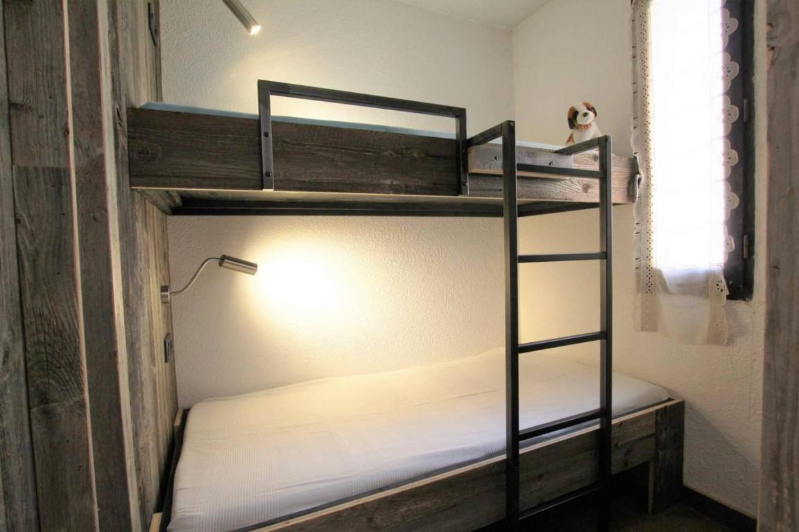 Fläche von ungefähr 35 m². Orientierung : Süd. Wohnzimmer mit (160). Schlafbereich mit Doppelbett. offener Schlafbereich mit 2 Stockbetten. Kochnische mit Fonduegerät, Raclettegerät, Kaffeemaschine (nespresso), Toaster, Geschirrspülmaschine, 2 Herdplatten. Waschräume mit Dusche, Waschmaschine. separates WC. Terrasse mit Gartentisch und -stühle. Die oberen Betten sind nicht für Kinder unter 6 Jahren geeignet.