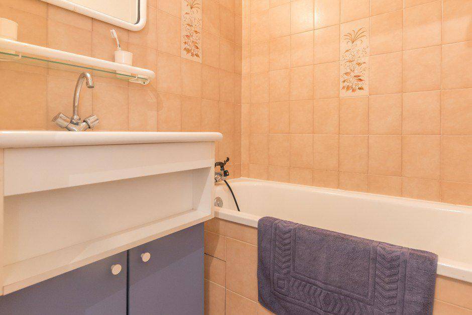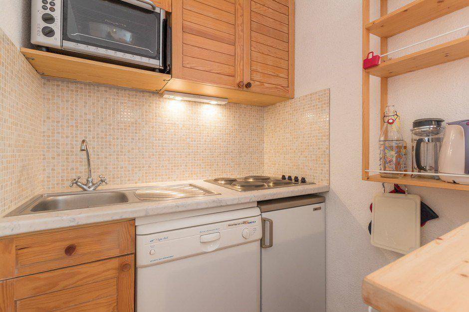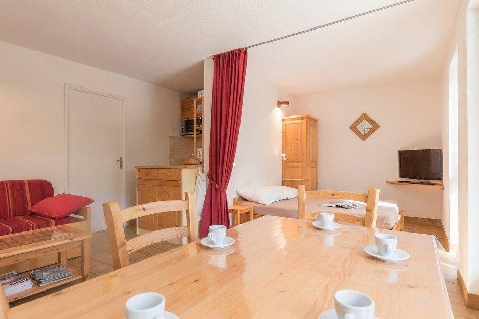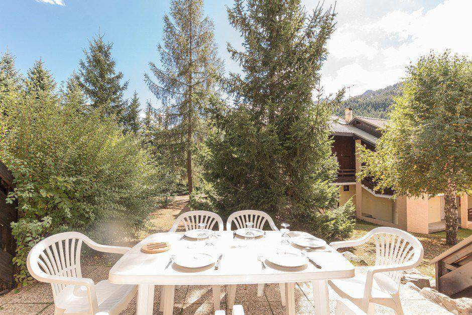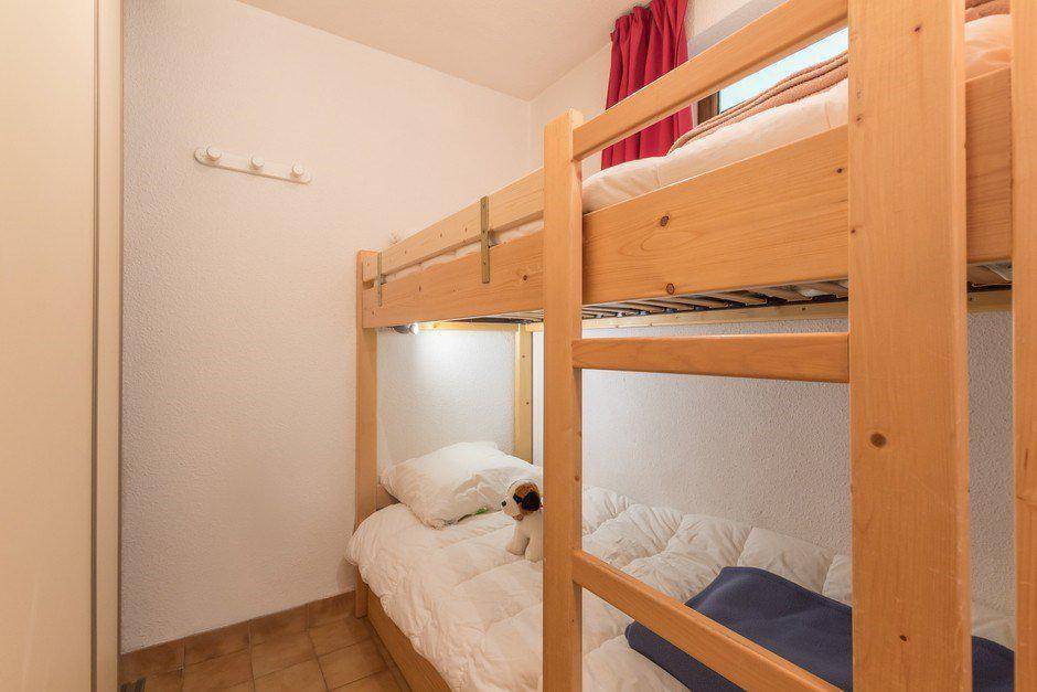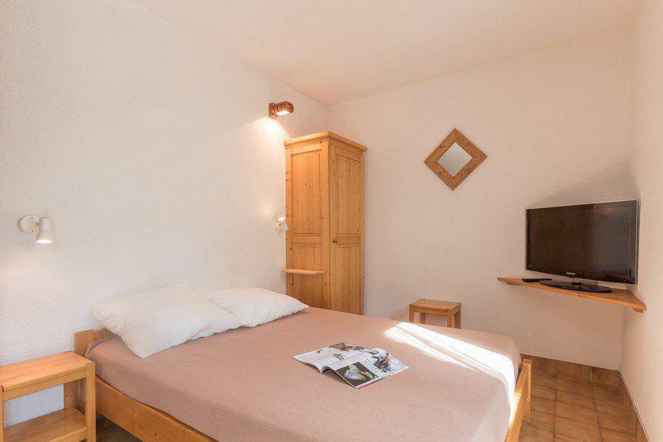 Fläche von ungefähr 40 m². Erdgeschoss. Orientierung : Süd. Wohnzimmer mit einfache Klappschlafcouch (80). offener Schlafbereich mit 2 Stockbetten (80). Schlafbereich mit Doppelbett (140). Küche mit Wasserkocher, Kaffeemaschine, Toaster, Geschirrspülmaschine, Mikrowellenherd, kleiner Backofen, 4 Herdplatten, Kühlschrank. Badezimmer mit Badewanne. separates WC. Terrasse mit Gartentisch und -stühle. Bügeleisen. Die oberen Betten sind nicht für Kinder unter 6 Jahren geeignet.