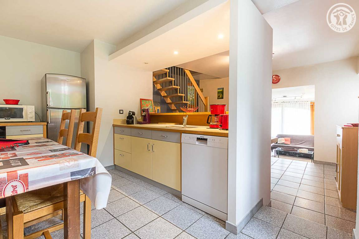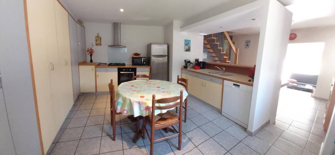 Reihenhaus auf 2 Ebenen. Erdgeschoss: Küche (Zugang über ein paar Stufen), Wohnzimmer und Lounge (Zugang über ein paar Stufen - Schlafsofa), WC. 1. Stock: 3 Schlafzimmer (1 Doppelbett / 1 Doppelbett / 1 Doppelbett, 2 Einzelbetten), Duschbad mit WC. Garten und möblierte Terrasse.