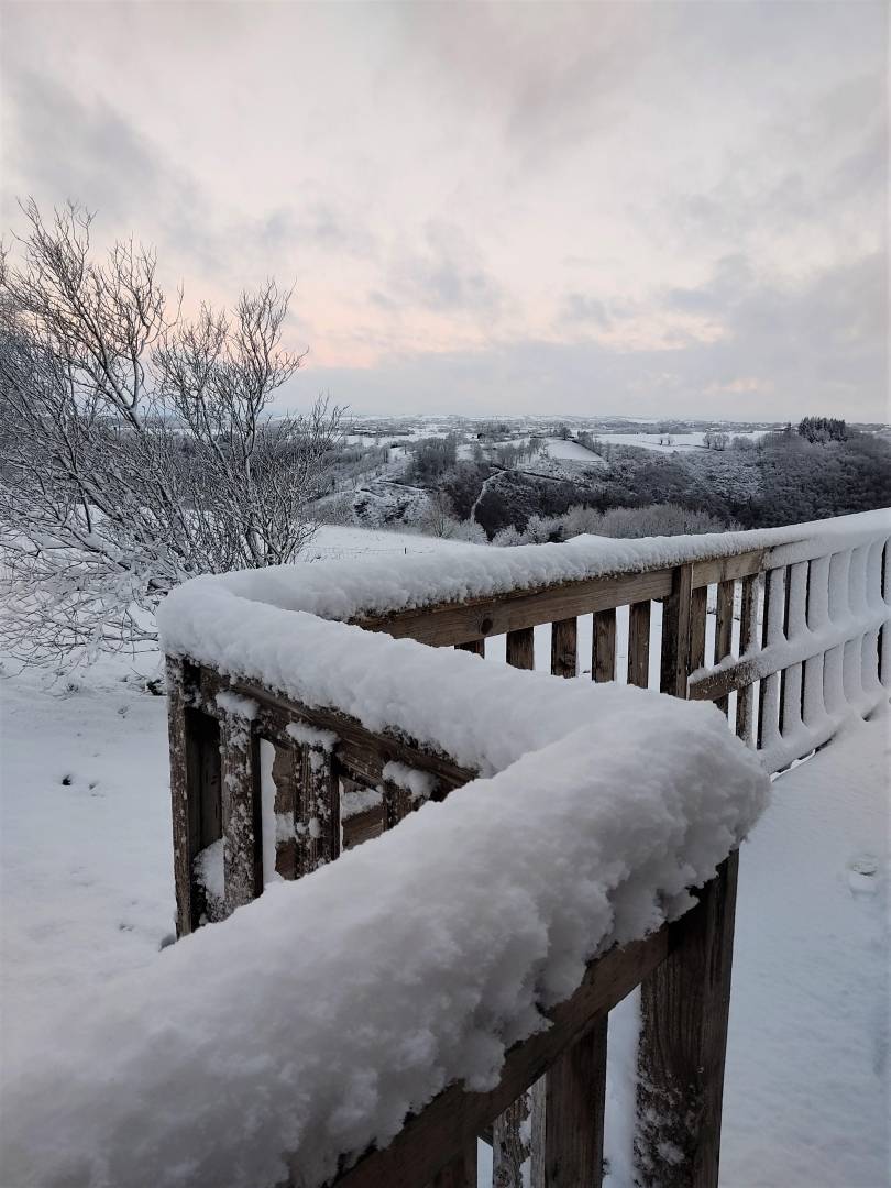„Rambarde neuve de la terrasse pas aux normes pour les enfants, 20 cm entre les lames un enfant peut passer à travers.“