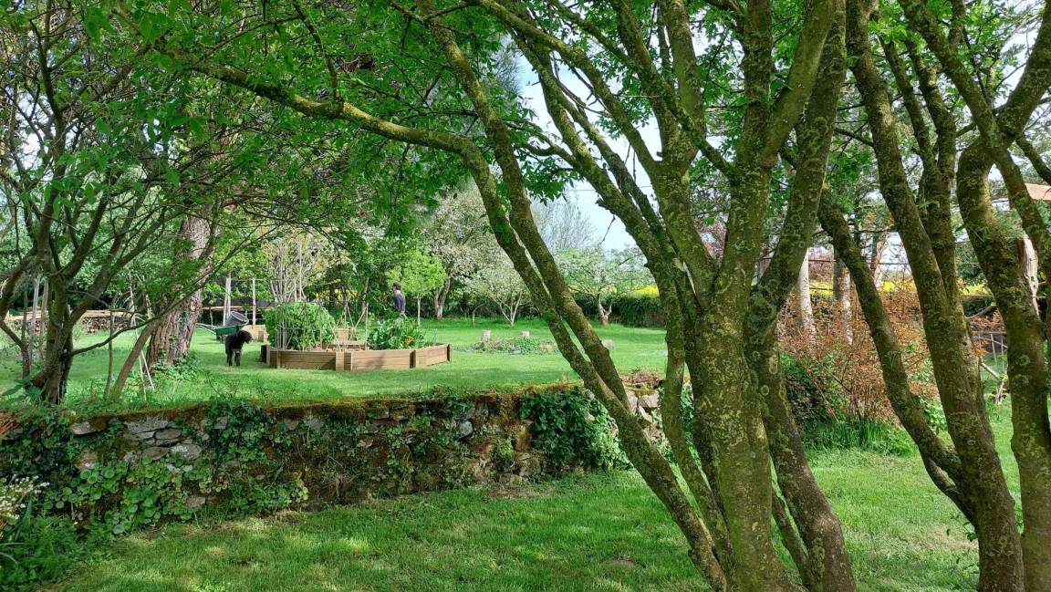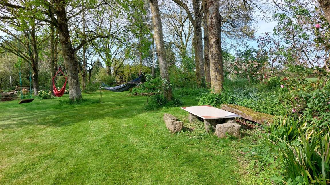 4000 m² großer Garten, der mit den Eigentümern geteilt wird und in dem die Blumenbeete und Ruhebereiche miteinander konkurrieren und zum Spazierengehen einladen. Bänke, Hängematten, Schaukeln und Trampoline sorgen für Unterhaltung.