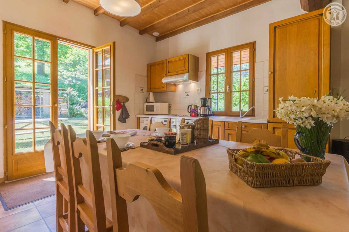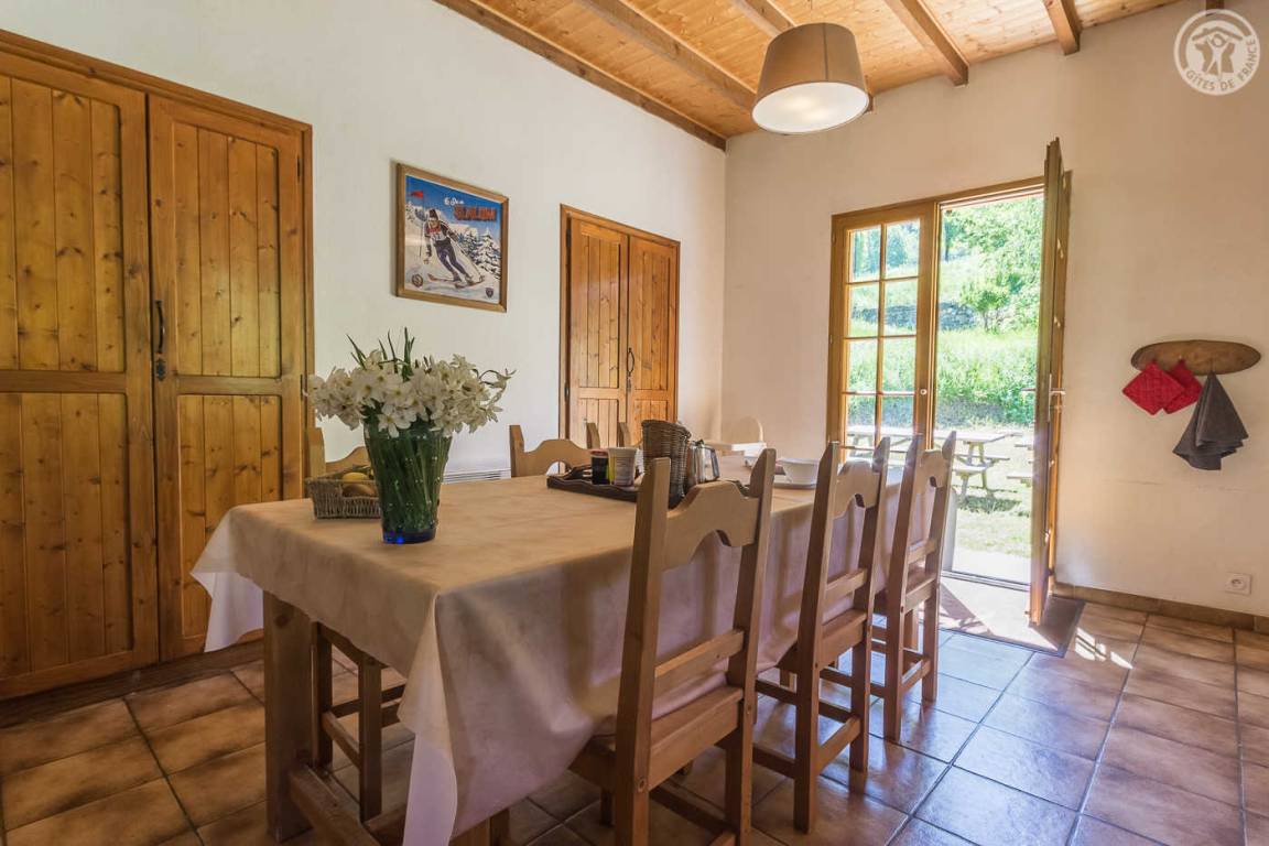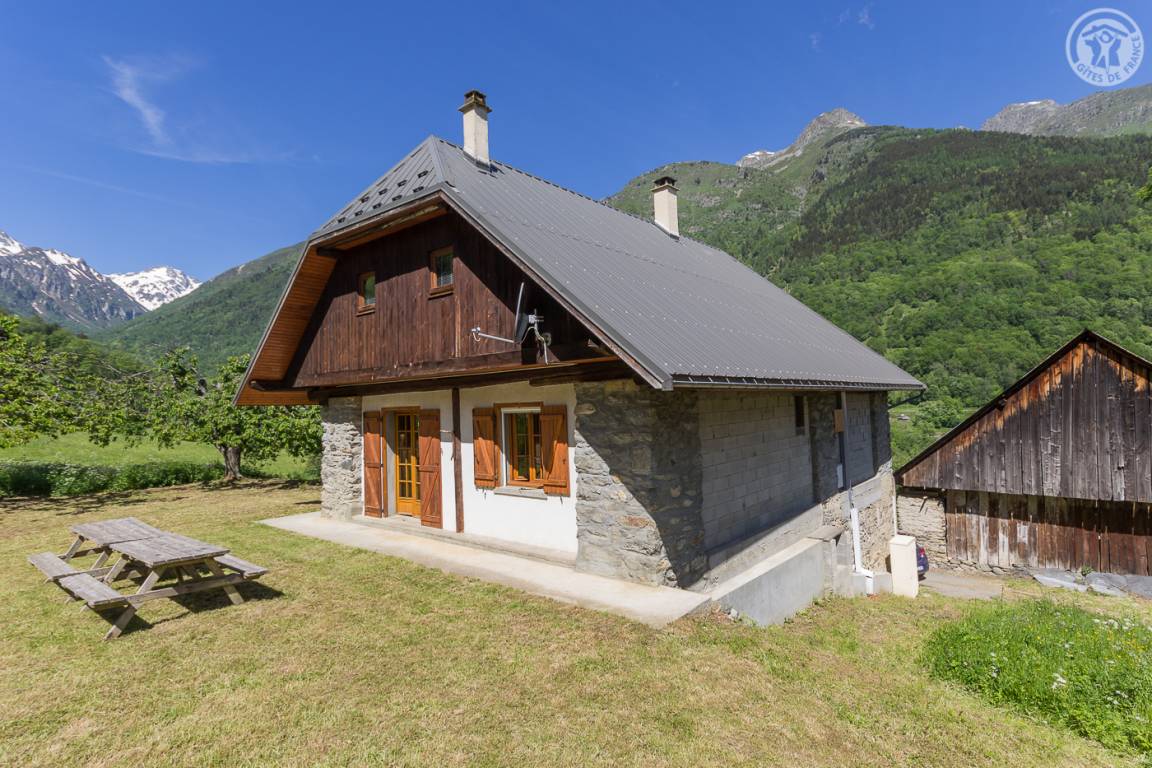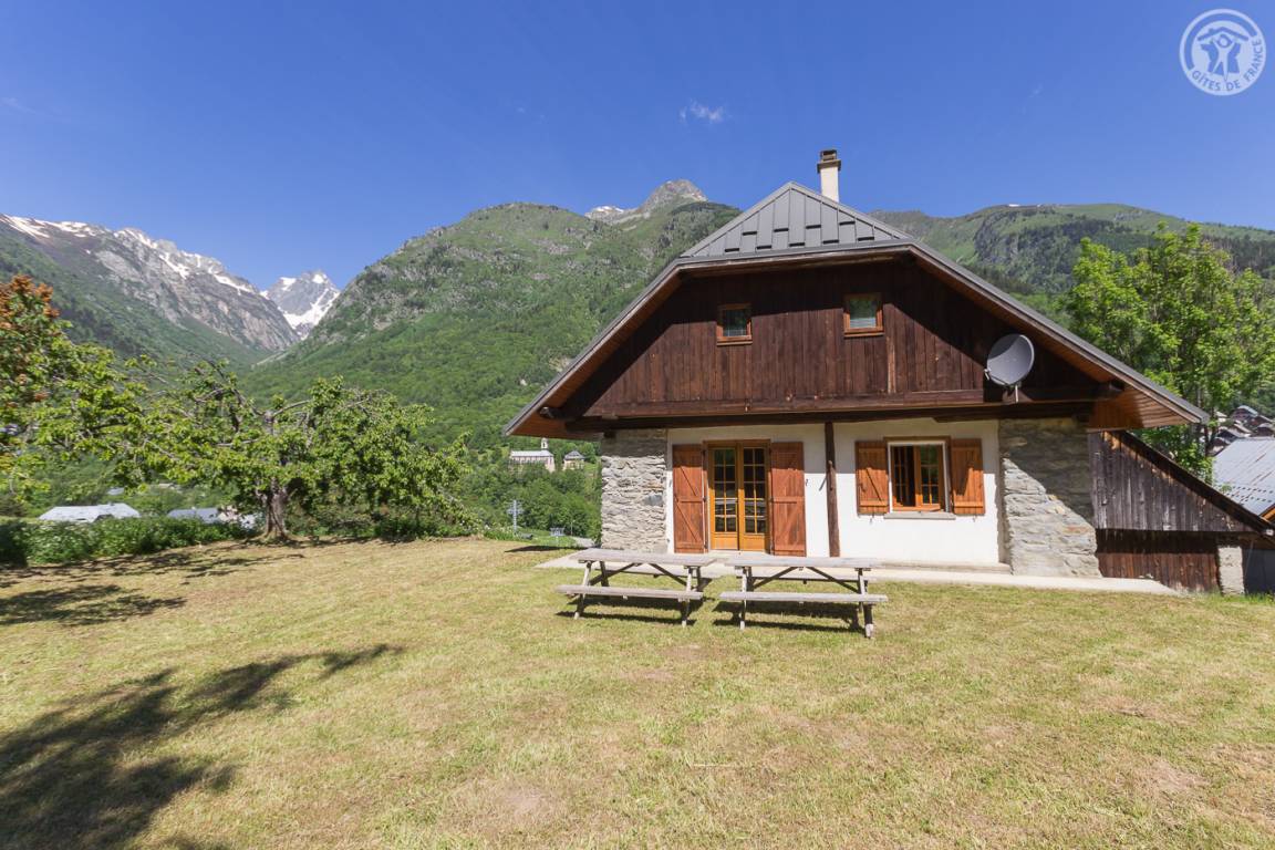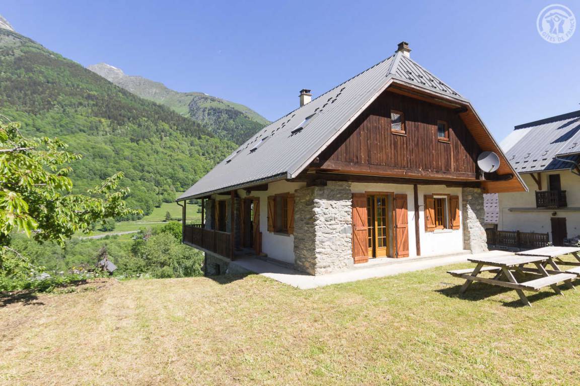 „Chalet situé dans une vallée très sauvage. Très belle vue dégagée sur la montage. Parc avec terrain multisport et baignade à 15mns à pied très apprécié des enfants. Confort parfait pour des vacances.“