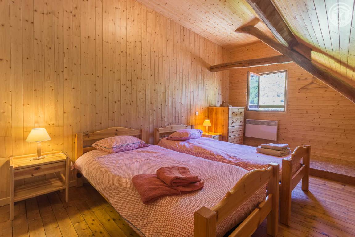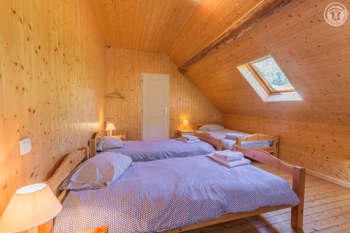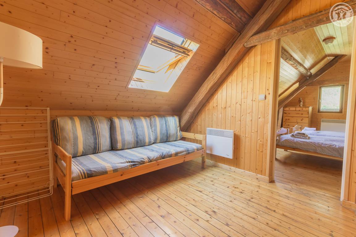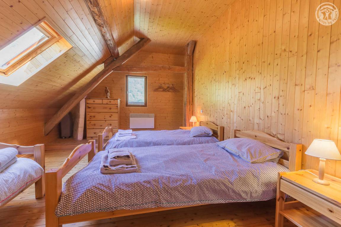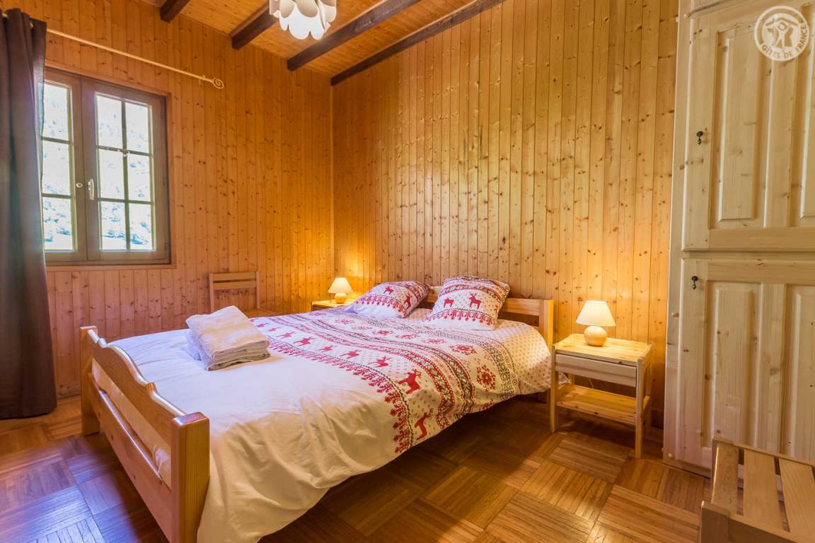 Unabhängiges Chalet auf 2 Etagen. Zugang über eine Außentreppe vom Parkplatz oder im Erdgeschoss vom Garten aus. Auf der Gartenebene: Wohnzimmer (Wohnküche-Wohnzimmer) mit Zugang zur Terrasse, 2 Schlafzimmer (1 Doppelbett 160 x 200 cm / 2 Einzelbetten), 1 Badezimmer (Dusche) und eine separate Toilette. Im Obergeschoss 3 Schlafzimmer (1 Schlafzimmer mit 4 Einzelbetten, 1 Schlafzimmer mit 3 Einzelbetten und 1 Schlafzimmer mit 2 Einzelbetten), 1 Badezimmer (Dusche) mit WC. Nicht eingezäunter Naturgarten. Parkplatz in der Nähe des Hauses. Barrierefreie Garage zum Abstellen von Skiern und Fahrrädern. Bettwäsche und Handtücher inklusive.