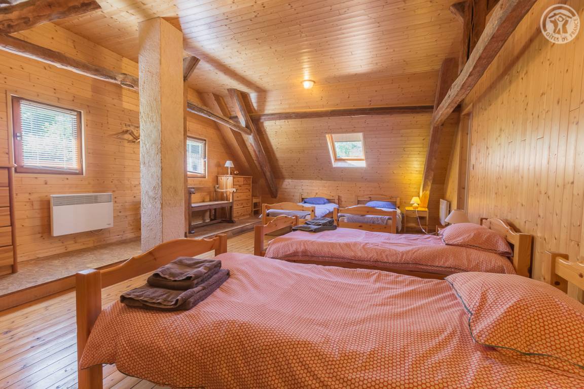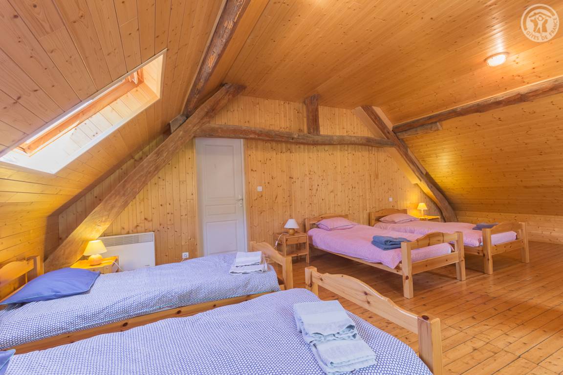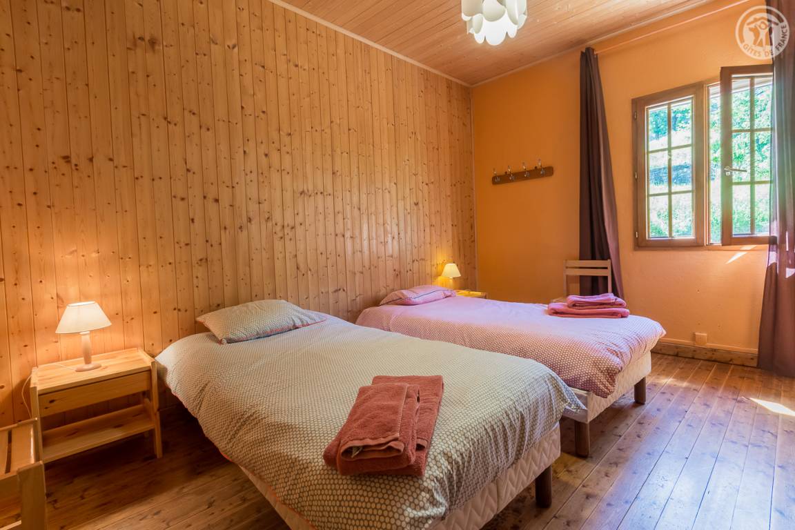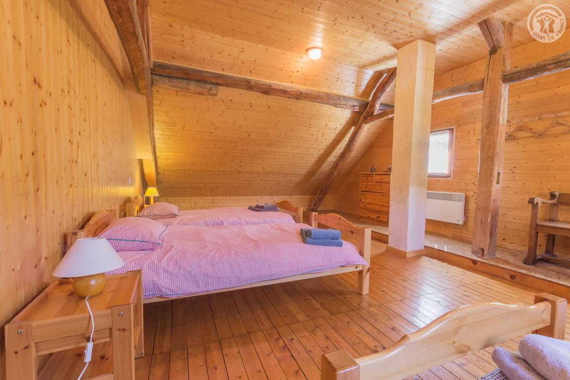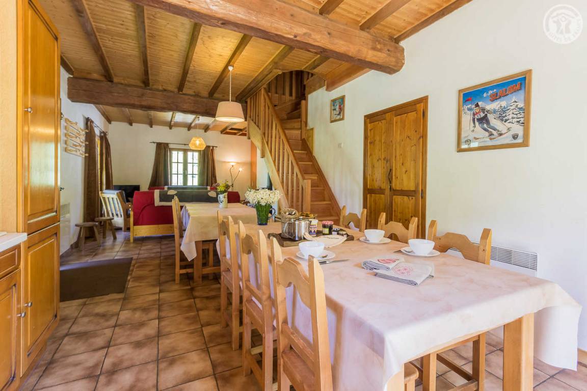 Unabhängiges Chalet auf 2 Etagen. Zugang über eine Außentreppe vom Parkplatz oder im Erdgeschoss vom Garten aus. Auf der Gartenebene: Wohnzimmer (Wohnküche-Wohnzimmer) mit Zugang zur Terrasse, 2 Schlafzimmer (1 Doppelbett 160 x 200 cm / 2 Einzelbetten), 1 Badezimmer (Dusche) und eine separate Toilette. Im Obergeschoss 3 Schlafzimmer (1 Schlafzimmer mit 4 Einzelbetten, 1 Schlafzimmer mit 3 Einzelbetten und 1 Schlafzimmer mit 2 Einzelbetten), 1 Badezimmer (Dusche) mit WC. Nicht eingezäunter Naturgarten. Parkplatz in der Nähe des Hauses. Barrierefreie Garage zum Abstellen von Skiern und Fahrrädern. Bettwäsche und Handtücher inklusive.