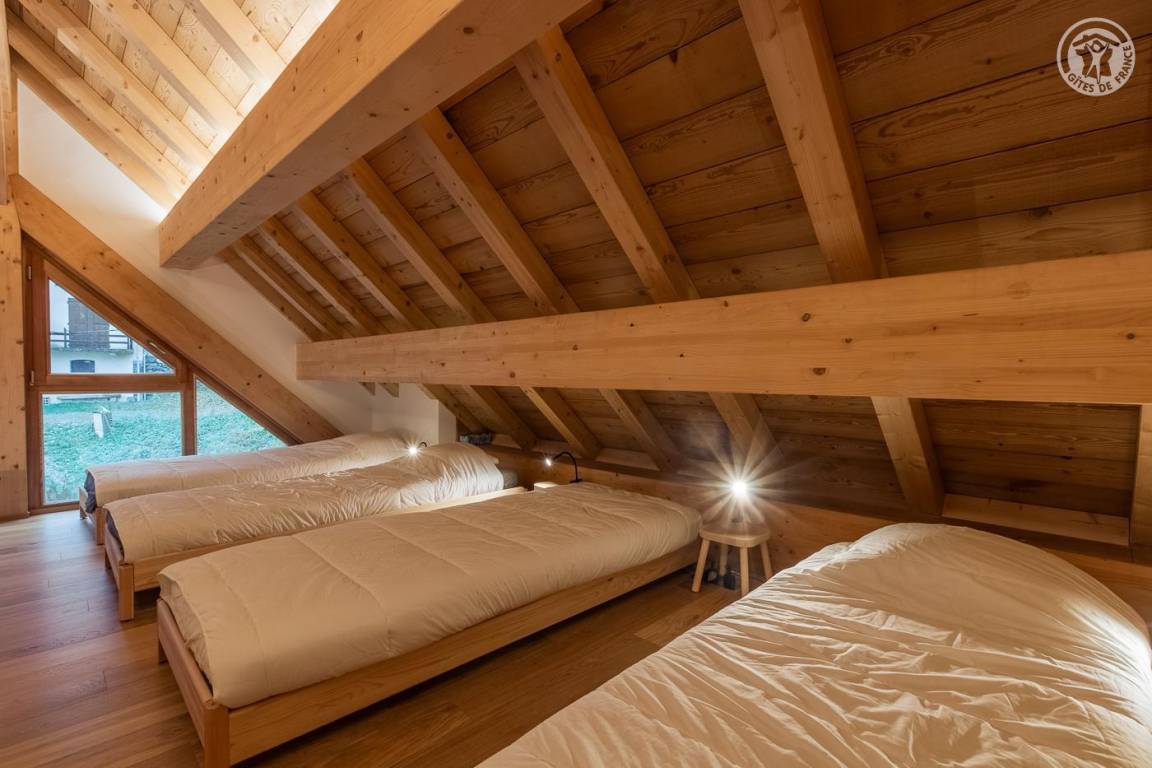 Freistehendes Haus auf 3 Ebenen (Zugang zu Fuß vom Parkplatz über einen Weg entlang der Böschung für 50 Meter), darunter im Erdgeschoss: ein Eingang mit Skiraum und elektrischem Schuhtrockner, eine Waschküche, separates WC, ein Wohnzimmer- Küchen-Lounge-Bereich (Holzkamin vorhanden). 1. Etage: 1 Schlafzimmer (1 Doppelbett 160x200 cm) und Badezimmer (Dusche), 2 Schlafzimmer (2 Einzelbetten 90x190 cm ausziehbar / 1 Doppelbett 140x190 cm), ein Maisonette-Schlafzimmer (Kinderspielecke mit TV) mit Treppenaufgang zum Dachgeschoss mit Dachschrägen (Schlafraum mit 6 Einzelbetten), ein Badezimmer (Dusche), 2. separates WC. Gesamtnutzfläche: 161 m² inklusive Dachgeschossflächen. 3 Terrassen und Grundstück. Gewölbekeller von 25 m² im Untergeschoss zur Aufbewahrung von Skiern und Fahrrädern.