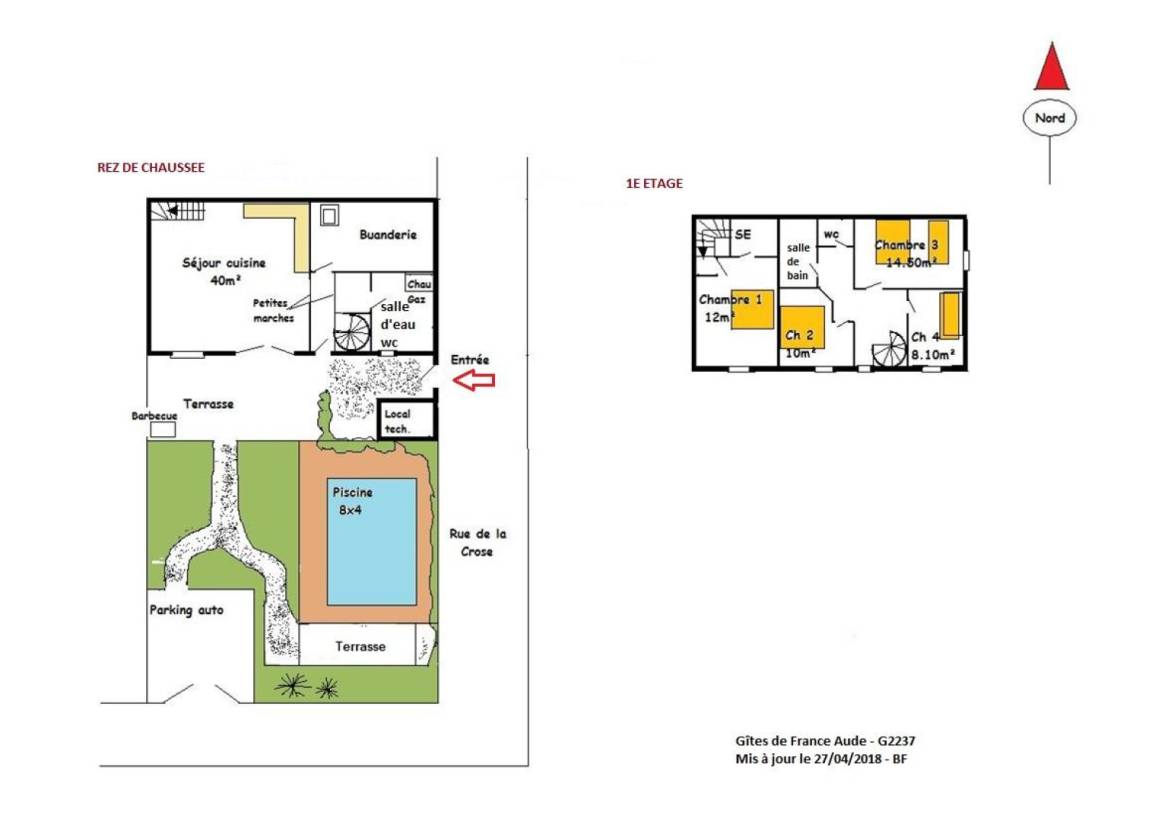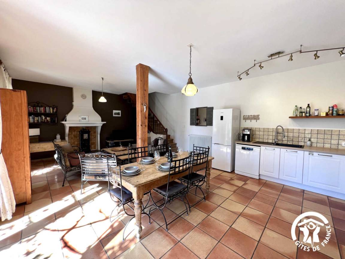 Das Ferienhaus verfügt über: Wohnraum Küche mit Blick auf eine Pergola Terrasse mit BBQ, Wäscheservice und lokalen Fahrrad oder Motorrad, Dusche - wc. Im Obergeschoss 1 Schlafzimmer mit Bett 140 und SE - wc befestigt auf einer Seite des Hauses und der anderen Seite durch eine Wendeltreppe Treppe 3 Zimmer mit 3 Betten 90 einschließlich 2superposes, 1 140 und 1 Bett 160. Bad und separatem WC. Heizung, zentrale Gas- und elektrisch, schlug Blätter geplanten Reinigung inbegriffen.